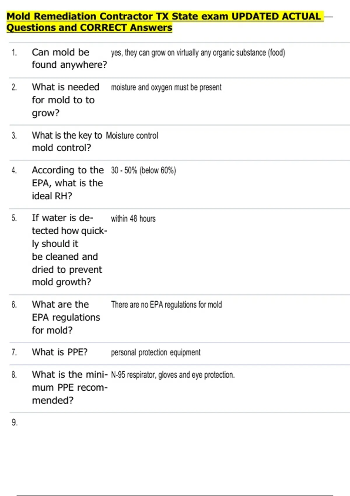 Mold Remediation Contractor TX State exam UPDATED ACTUAL