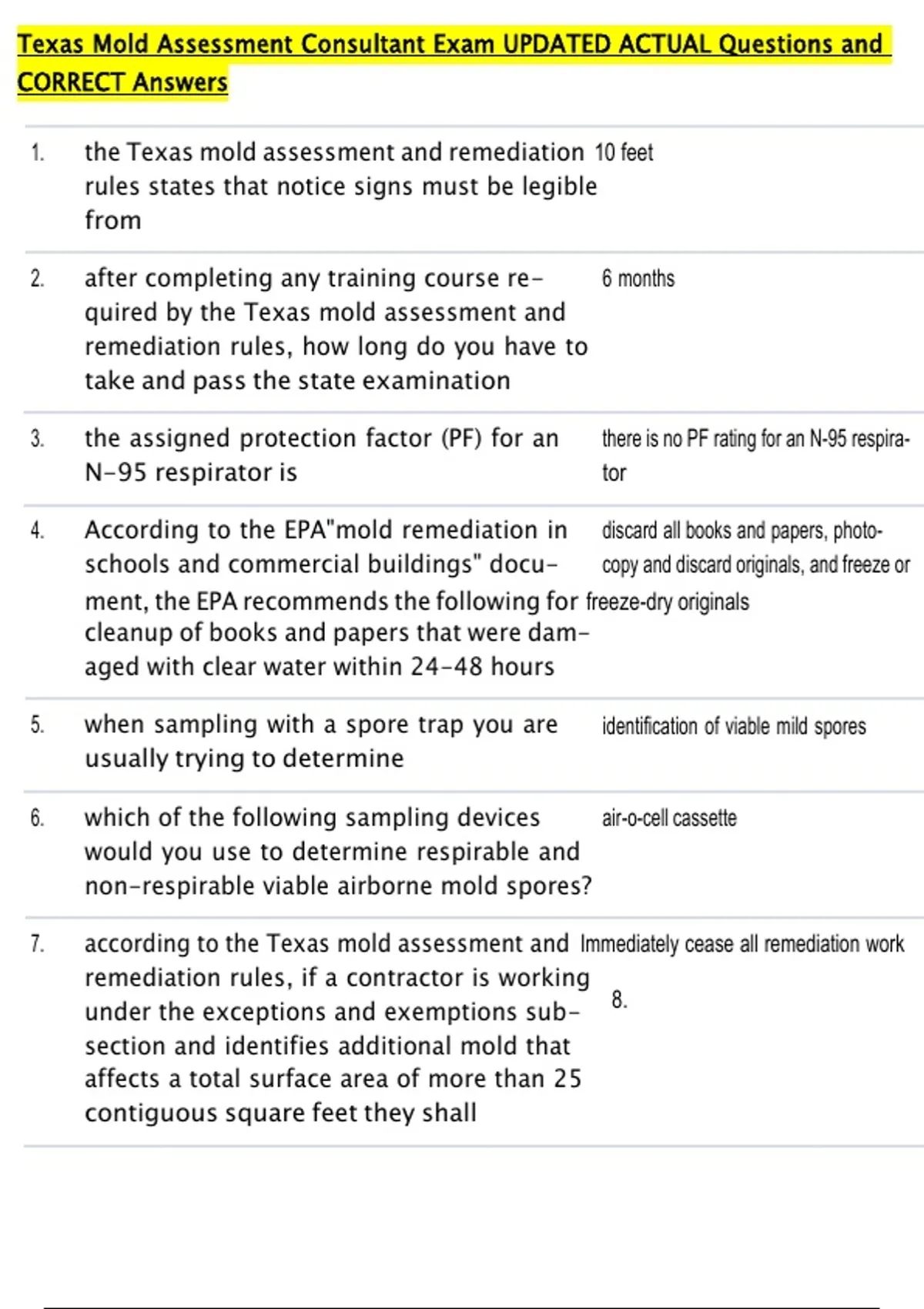Texas Mold Assessment Consultant Exam UPDATED ACTUAL Questions and