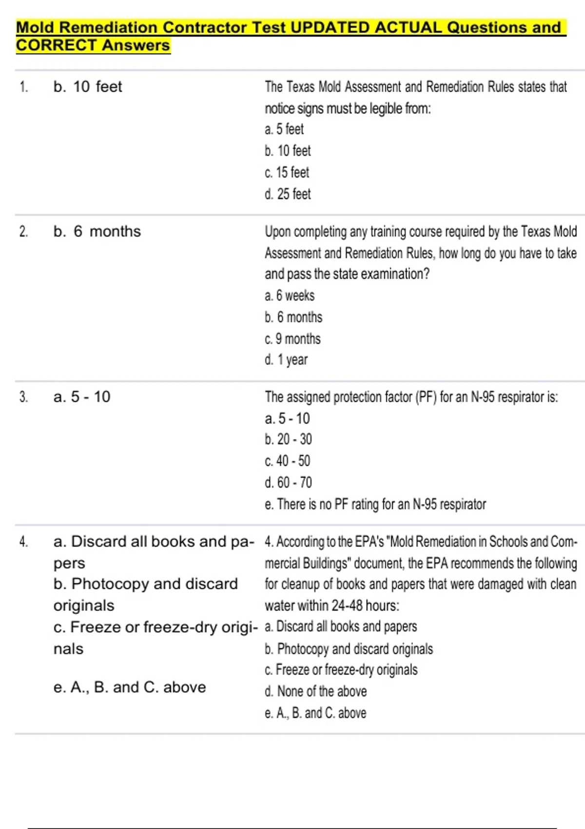 Mold Remediation Contractor Test UPDATED ACTUAL Questions and