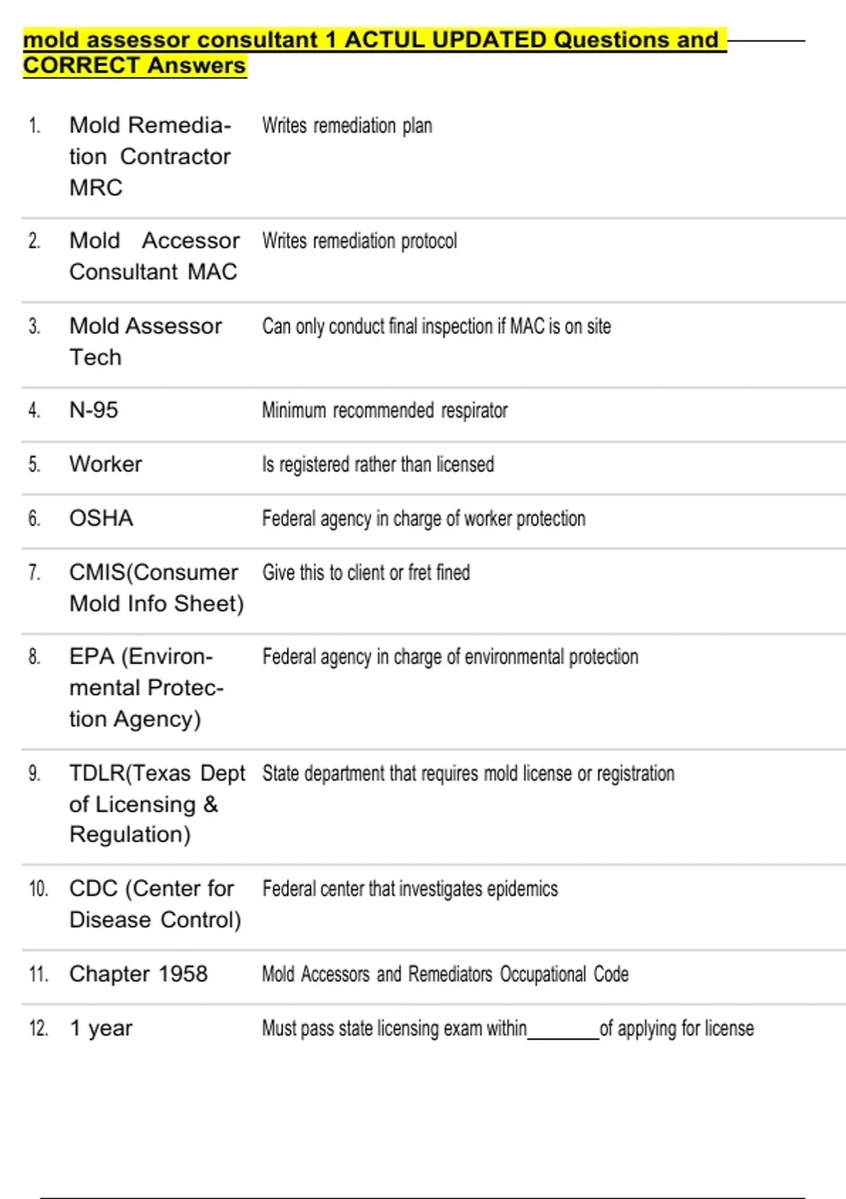 mold assessor consultant 1 ACTUL UPDATED Questions and