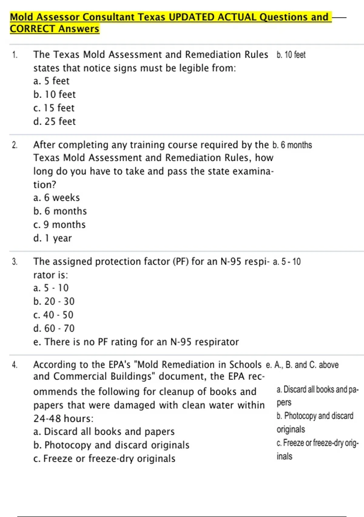 Mold Assessor Consultant Texas UPDATED ACTUAL Questions and