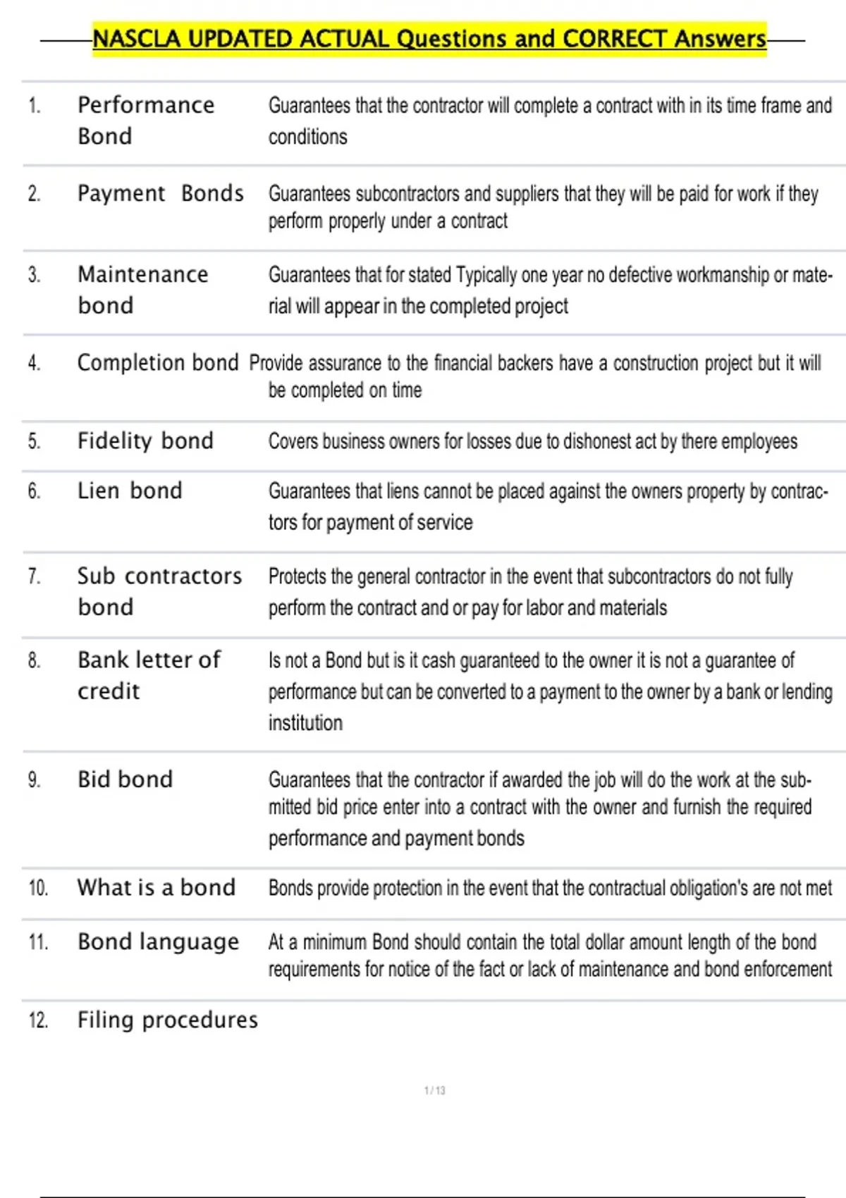 NASCLA UPDATED ACTUAL Questions and CORRECT Answers