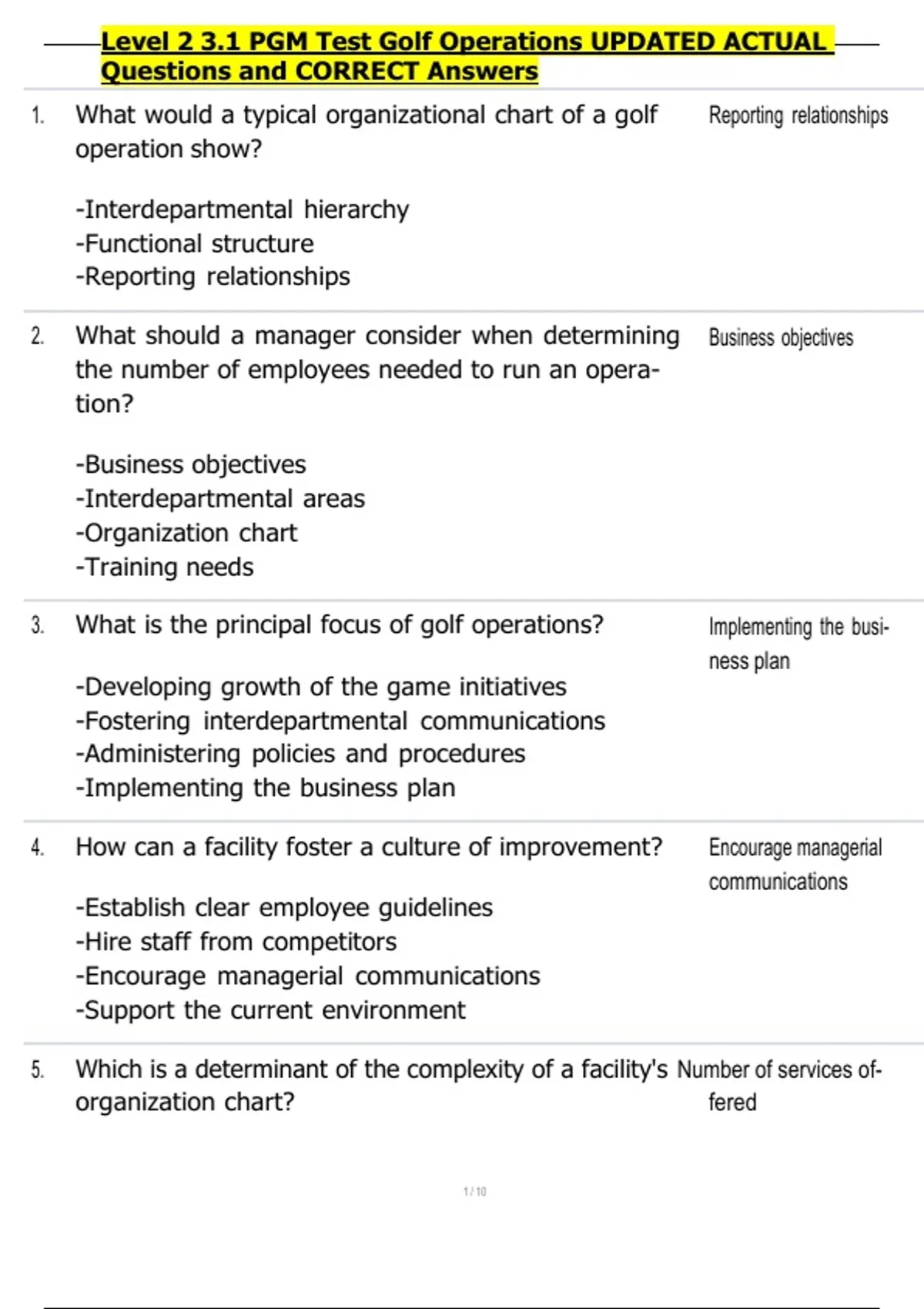 , Level 2 3.1 PGM Test Golf Operations UPDATED ACTUAL