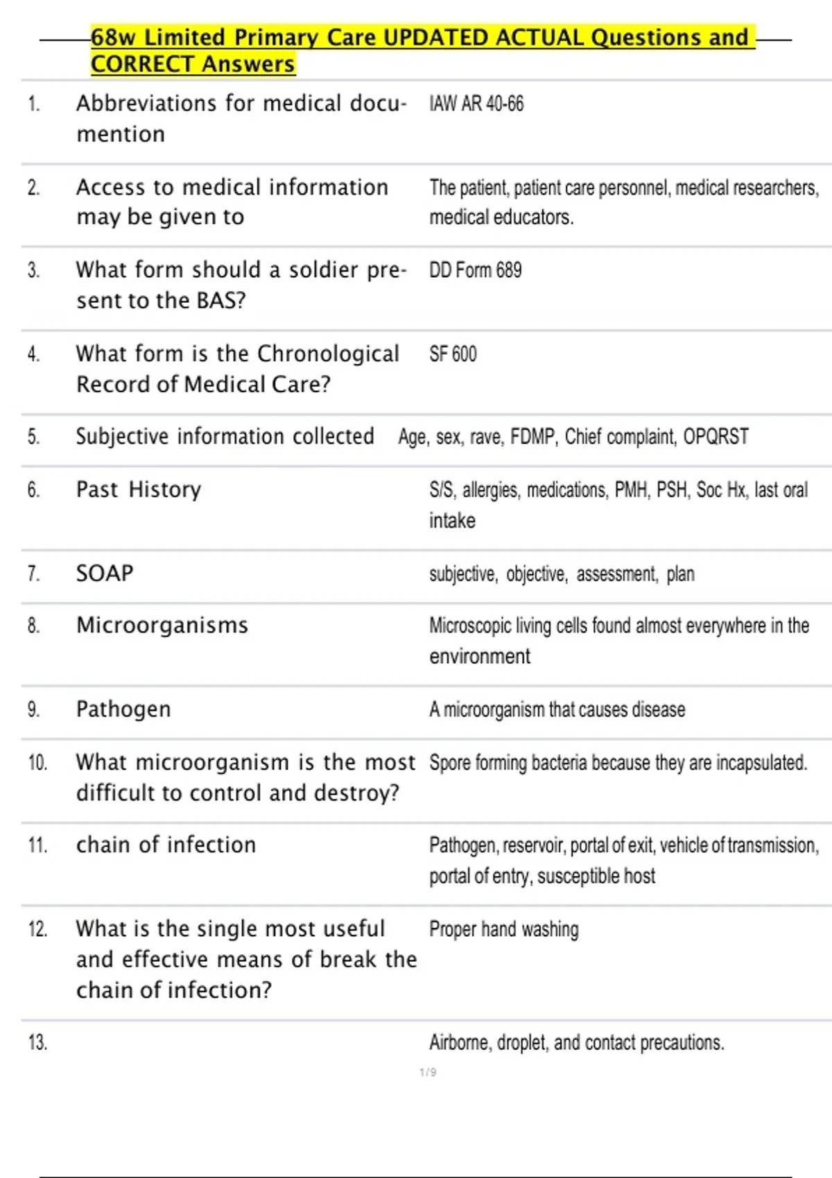 , 68w Limited Primary Care UPDATED ACTUAL Questions and