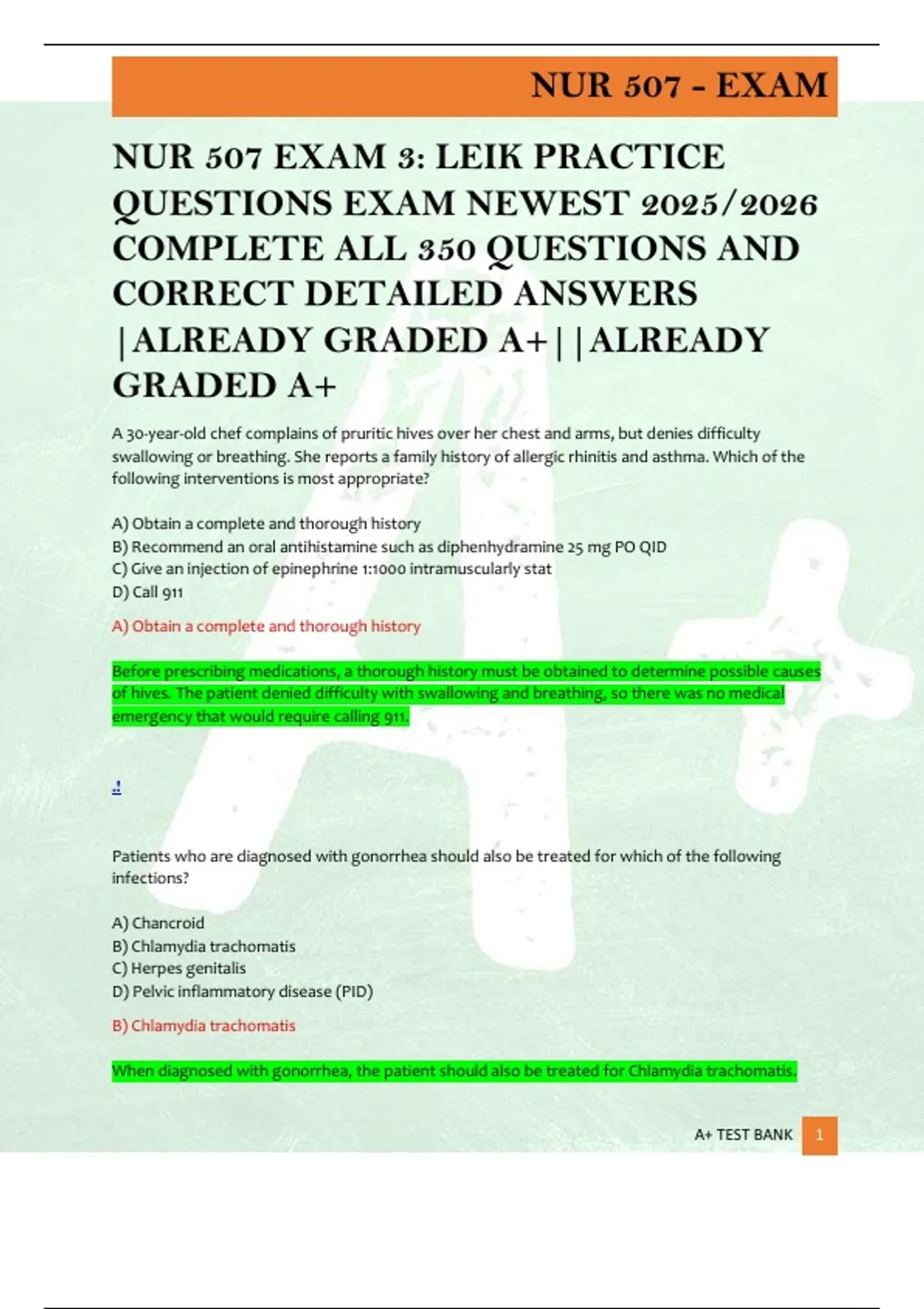 A+ TEST BANK 1