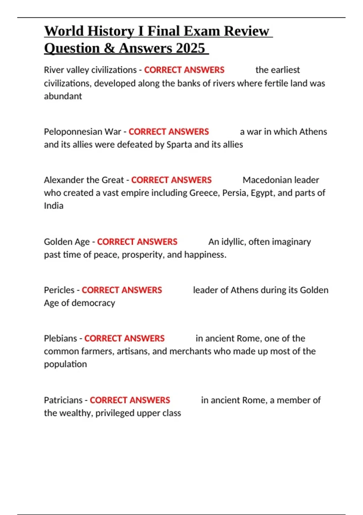 World History I Final Exam Review Question & Answers 2025.docx