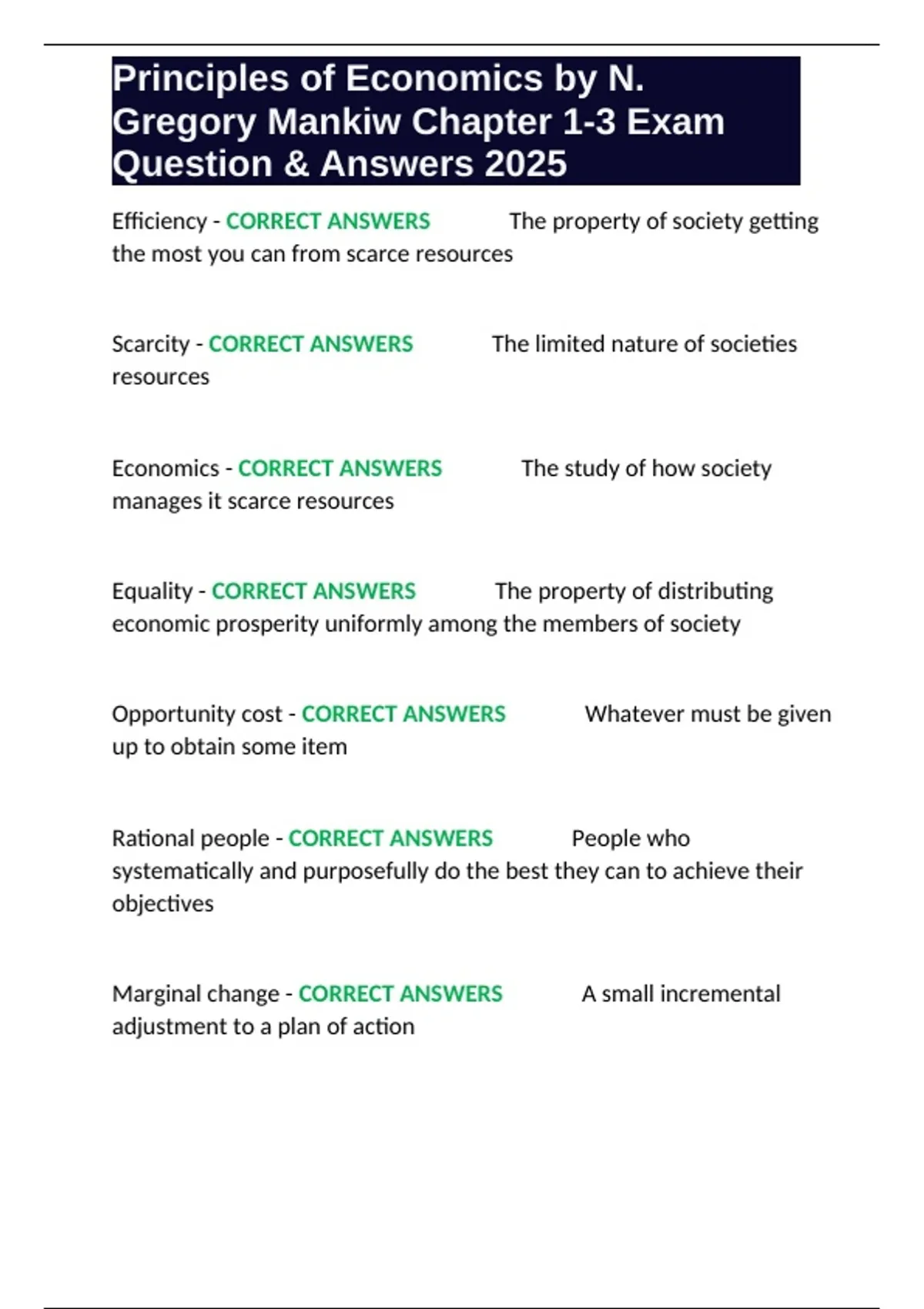 Gregory Mankiw Chapter 1-3 Exam