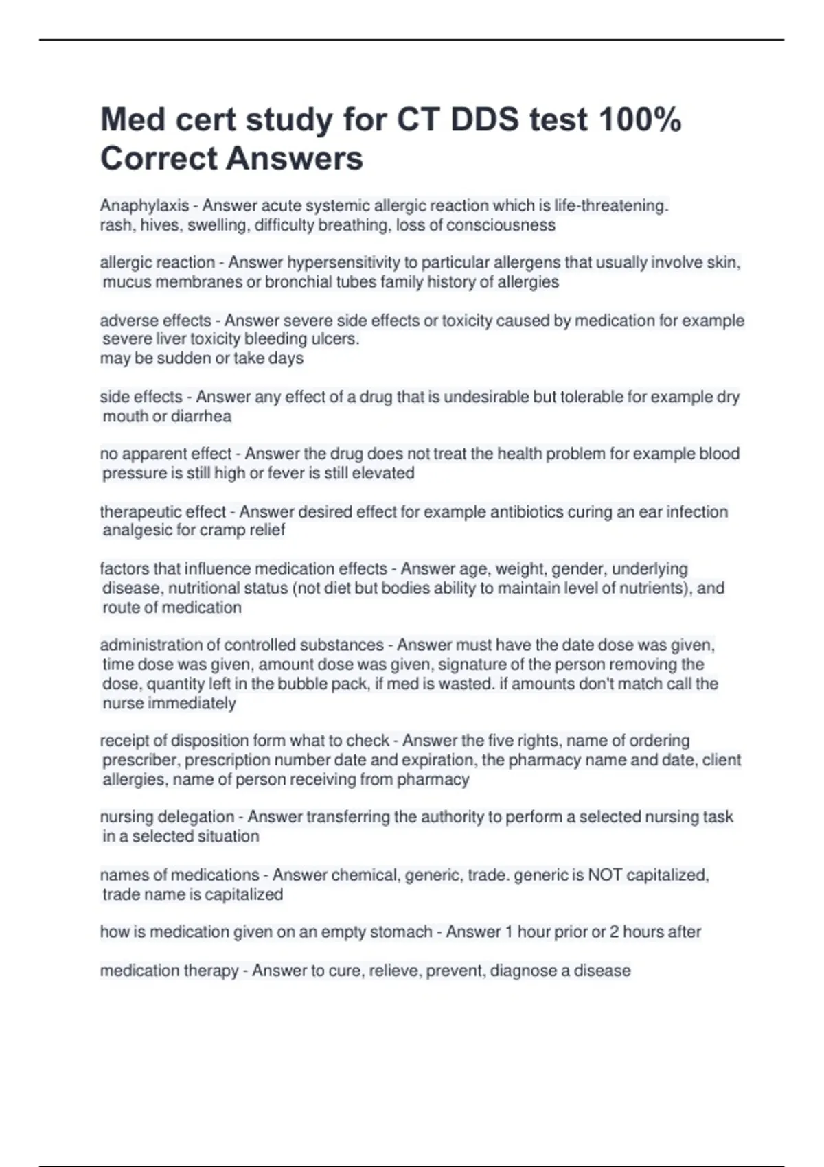 Med Cert Study For CT DDS