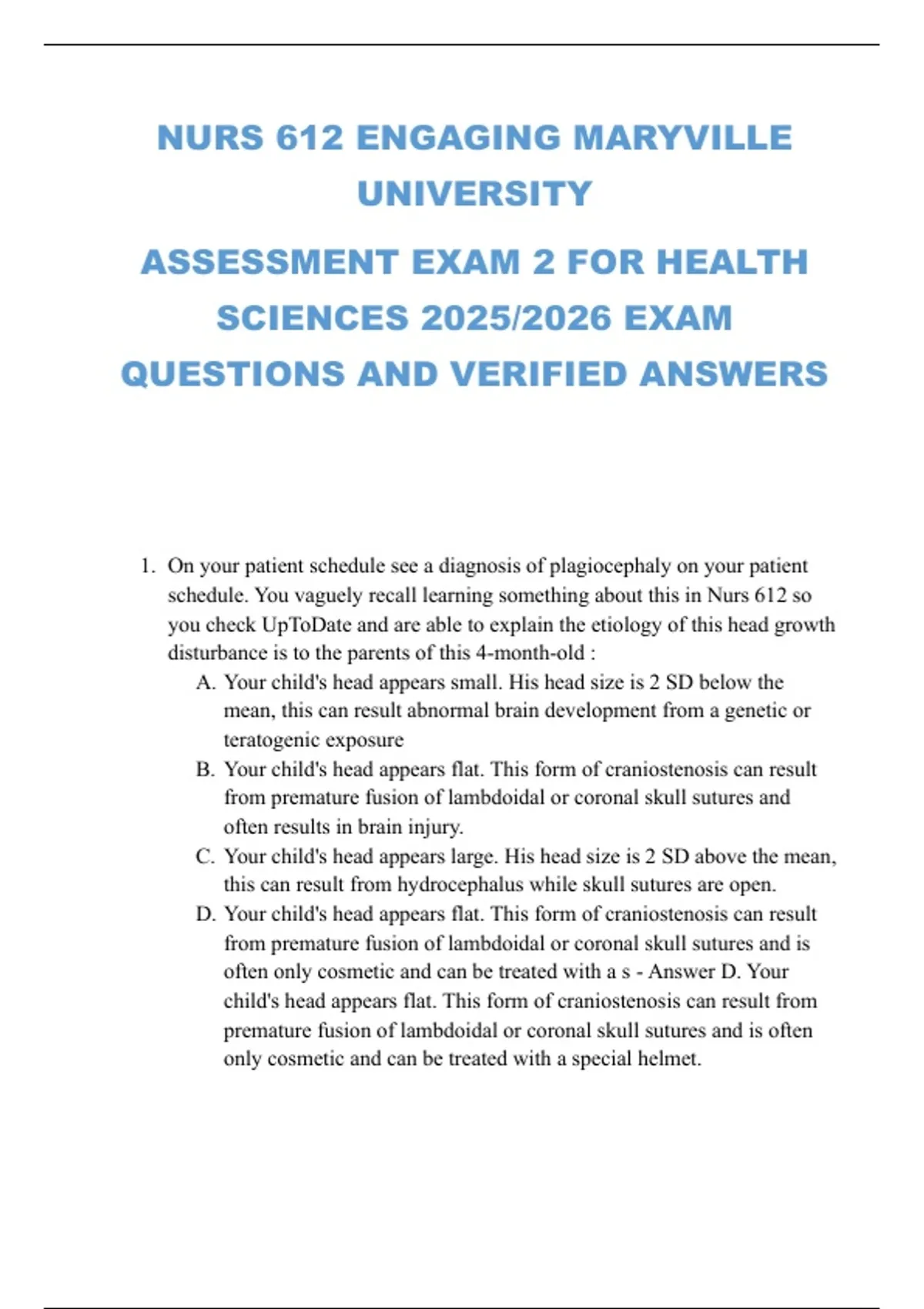 ASSESSMENT EXAM 2 FOR HEALTH