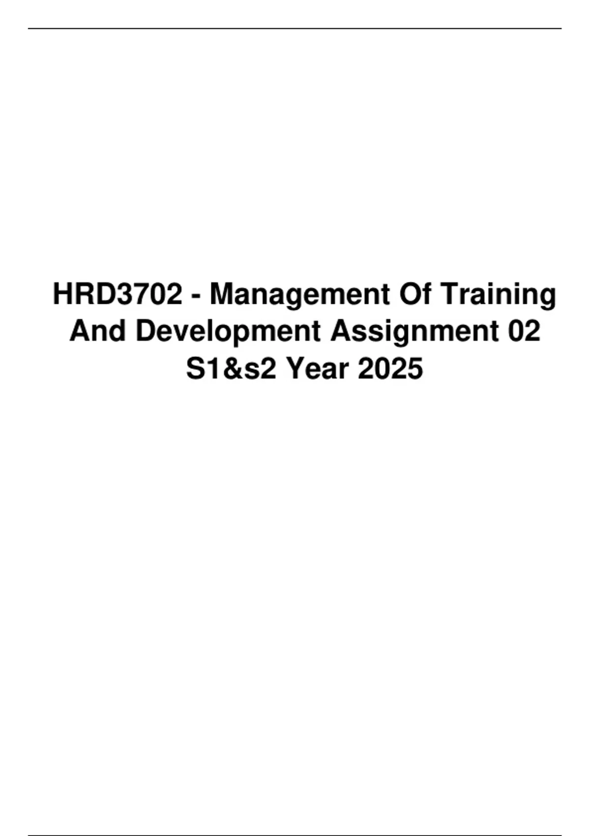 HRD3702 - Management of Training and Development Assignment 02 S1&s2 Year 2025
