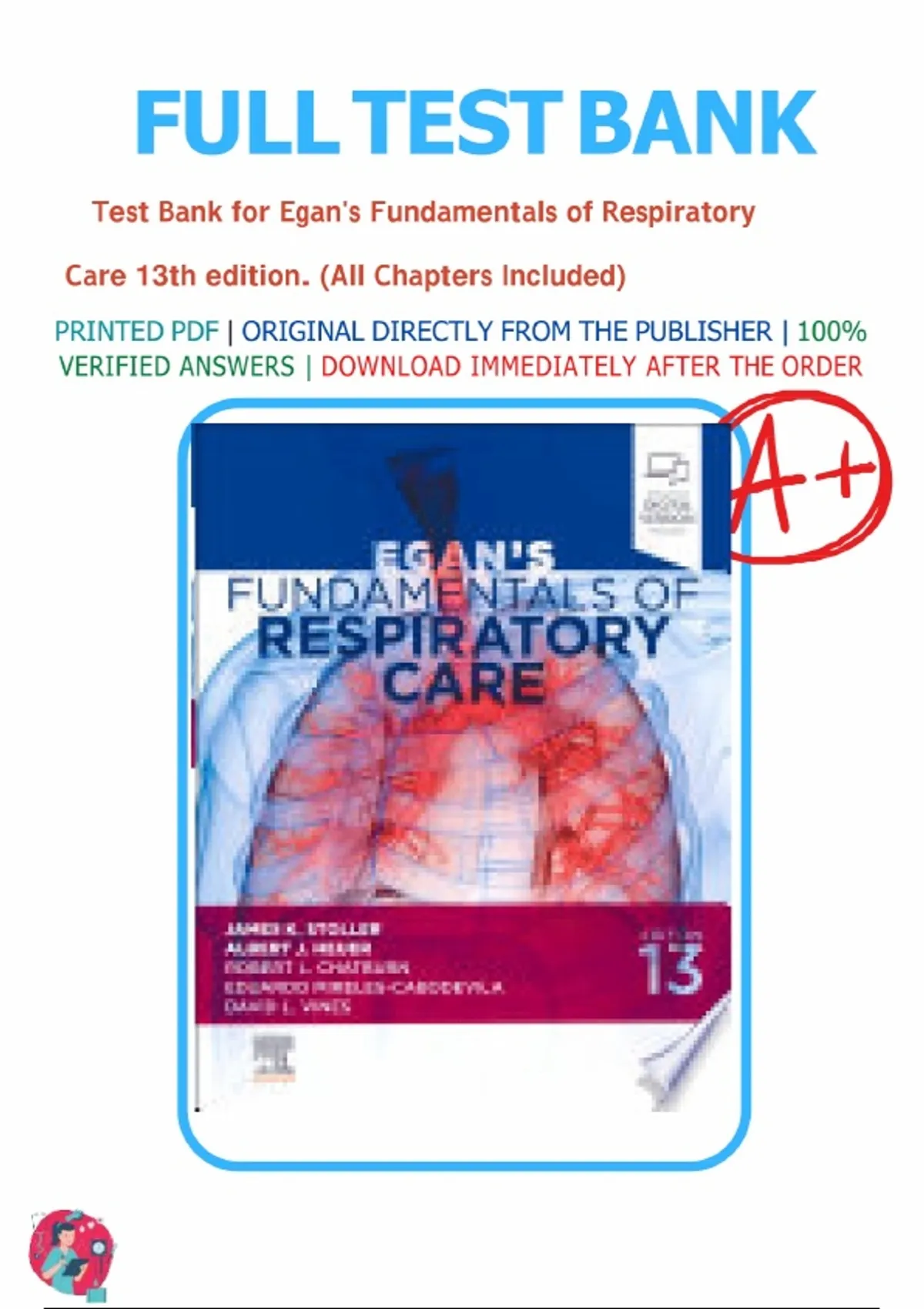 Test Bank- Egan's Fundamentals of Respiratory Care 13th edition by James K. Stoller, Albert J. Heuer.|| All Chapters included