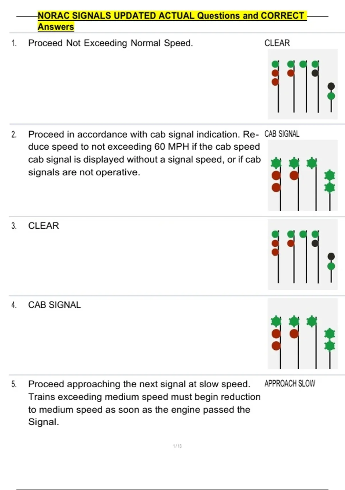 , NORAC SIGNALS UPDATED ACTUAL Questions and CORRECT