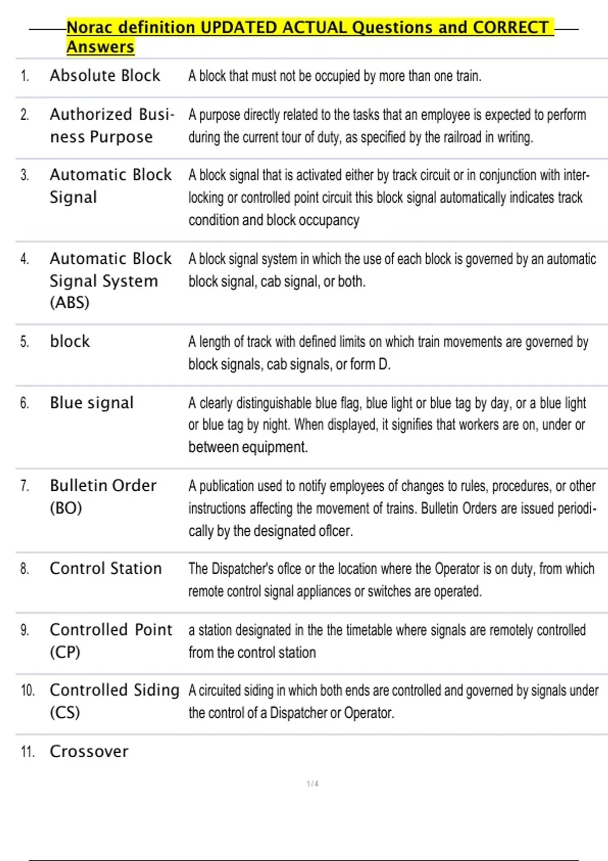 1. Absolute Block A block that must not be occupied by more than one train.