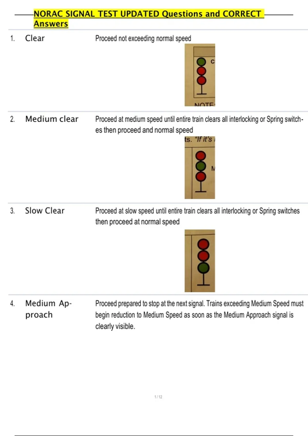 2. Medium clear Proceed at medium speed until entire train clears all interlocking or Spring switch-