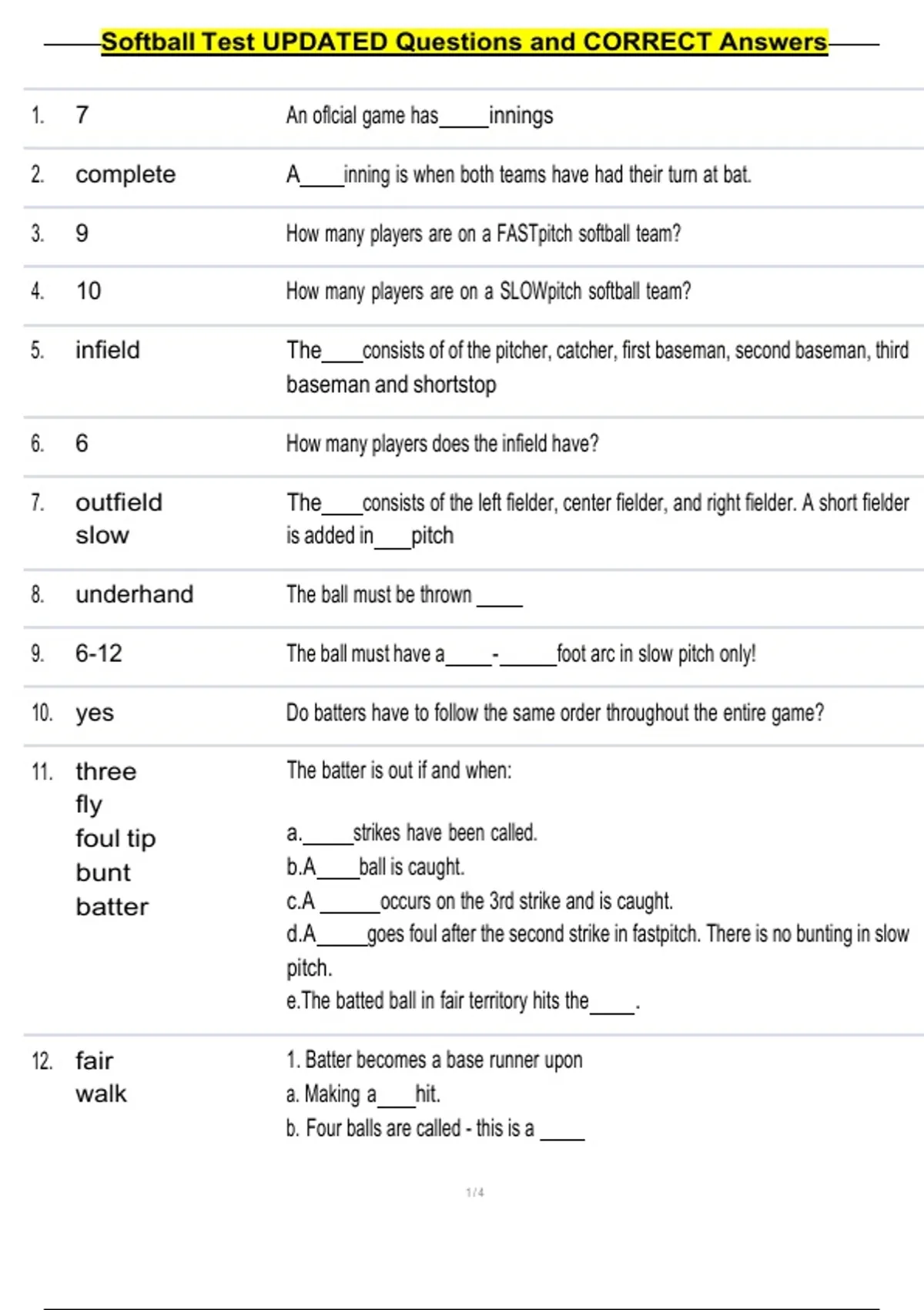 4. 10 How many players are on a SLOWpitch softball team?