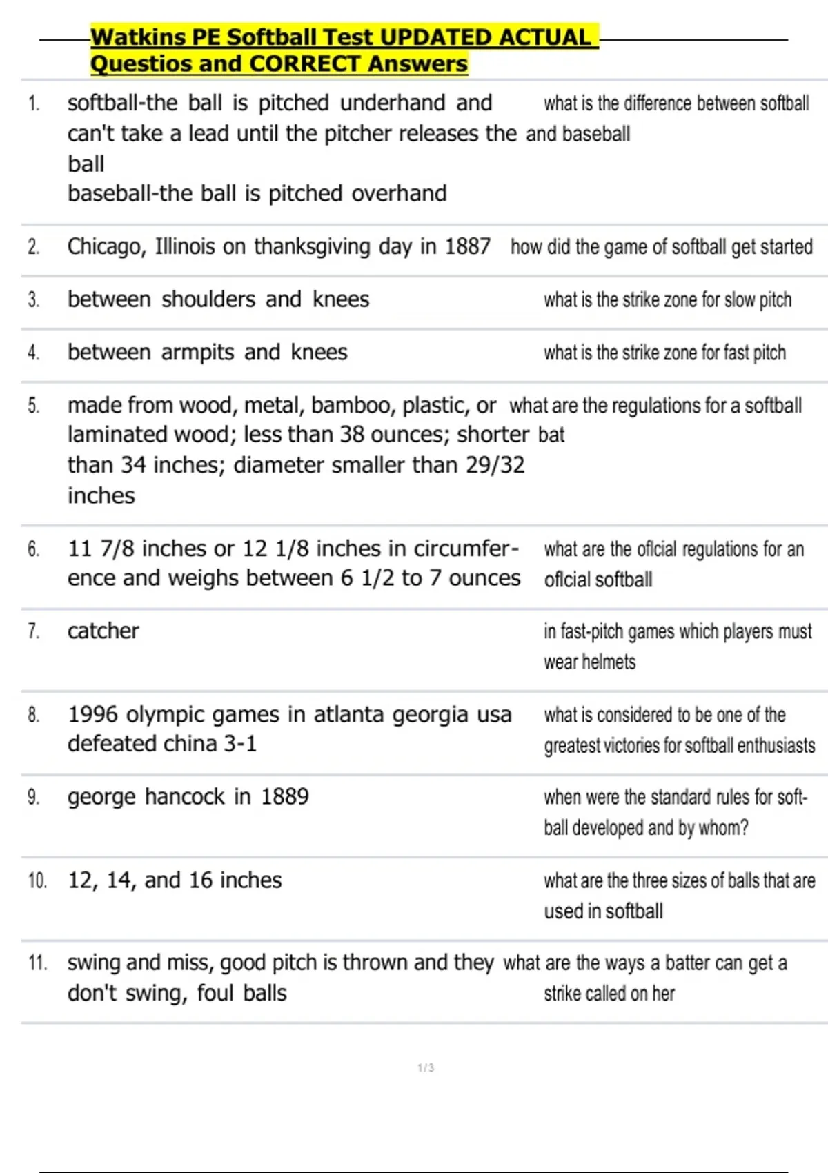 1. softball-the ball is pitched underhand and what is the difference between softball