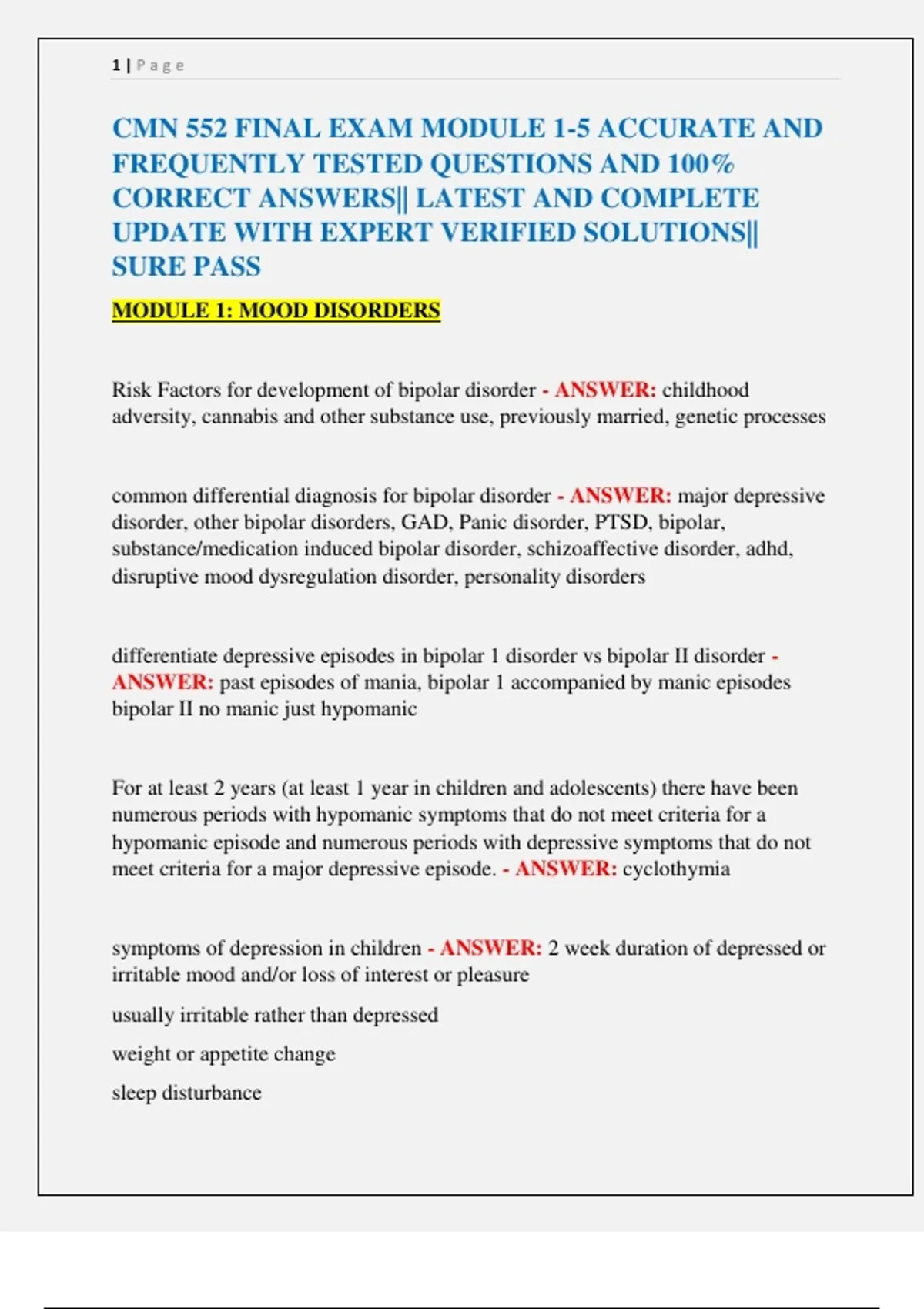 CMN 552 FINAL EXAM MODULE 1-5 ACCURATE AND
