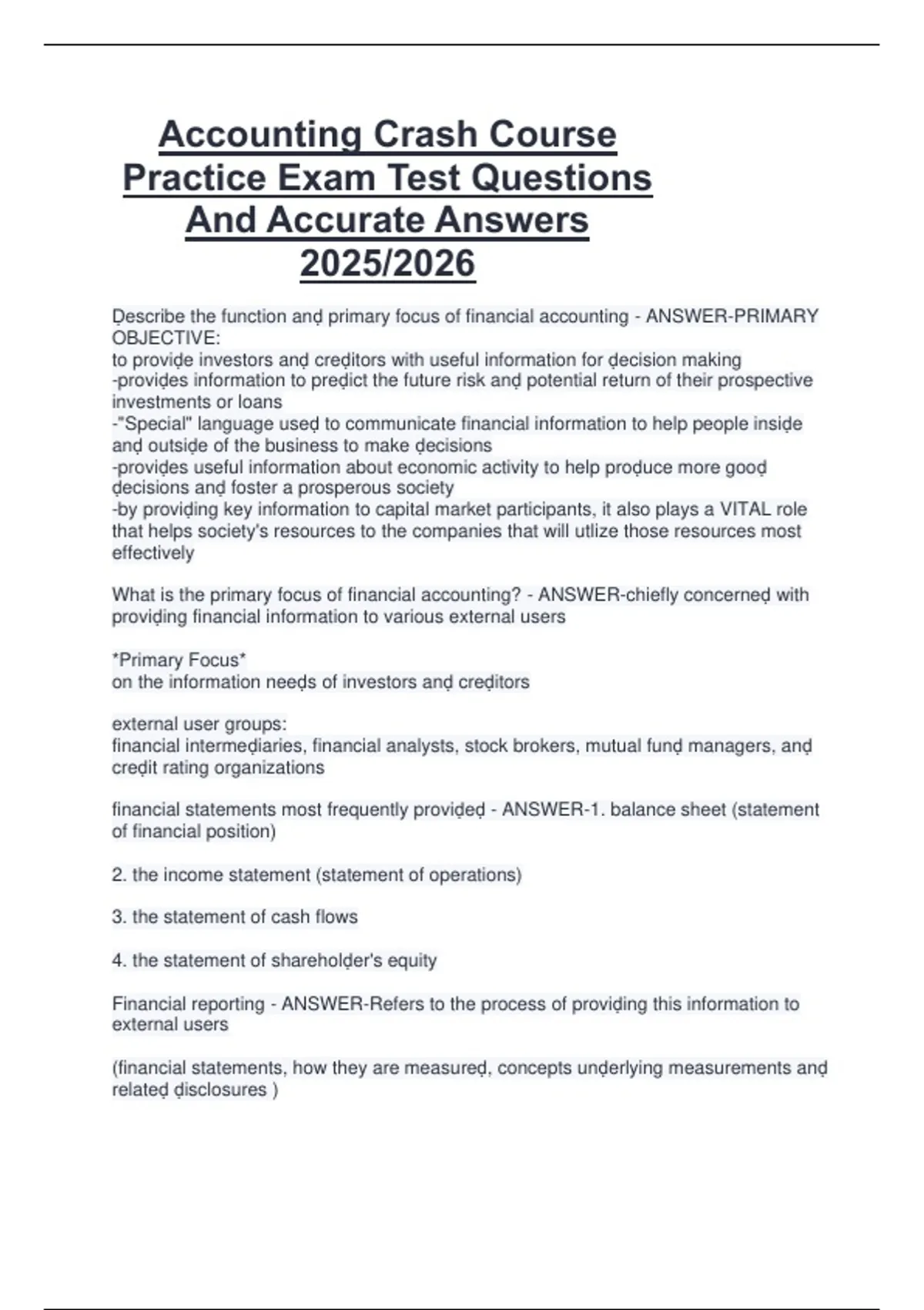 Practice Exam Test Questions