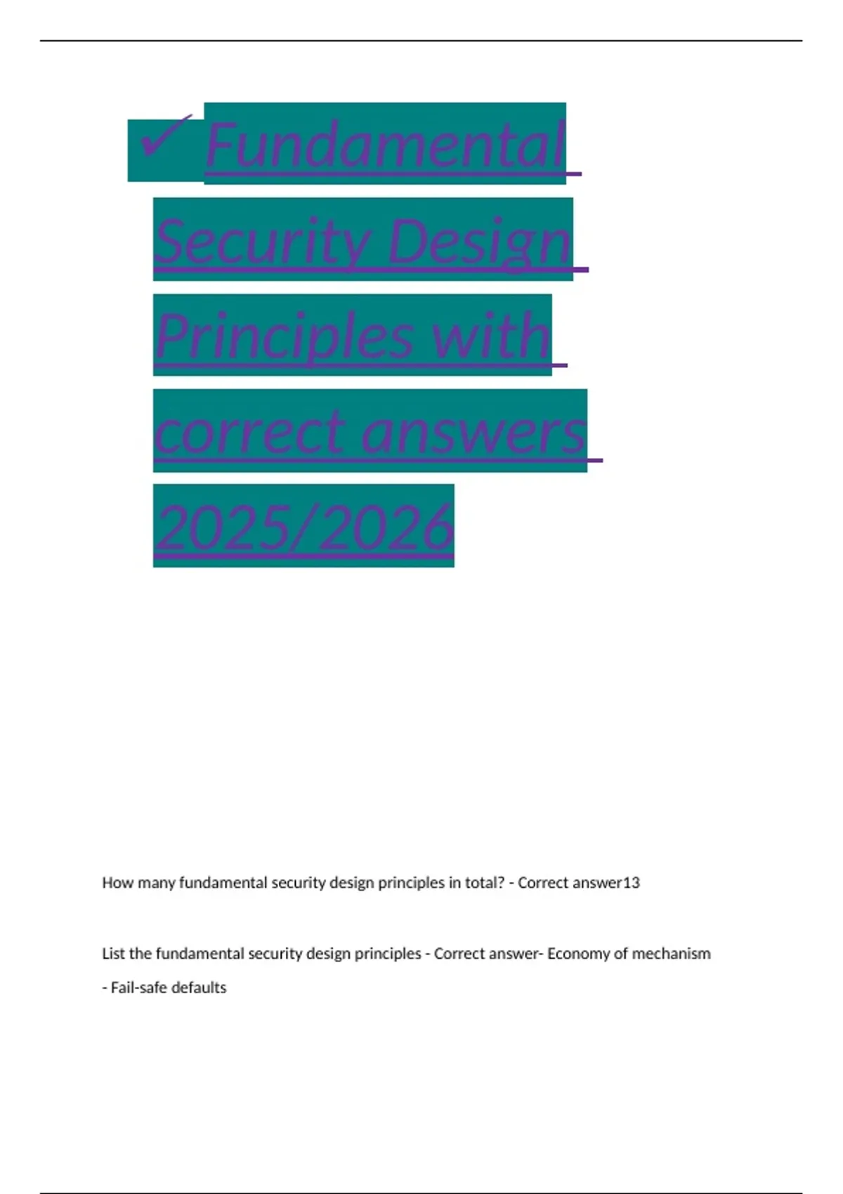 List the fundamental security design principles - Correct answer- Economy of mechanism