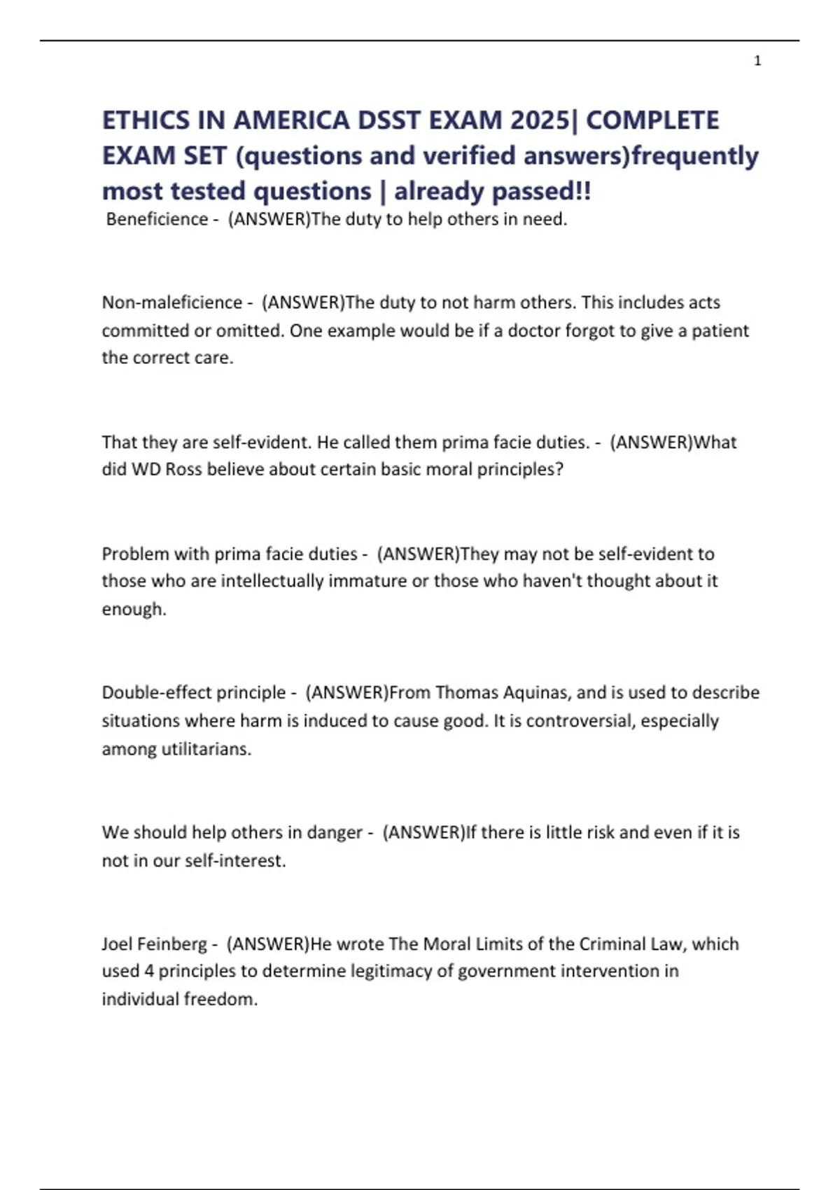 ETHICS IN AMERICA DSST EXAM 2025| COMPLETE
