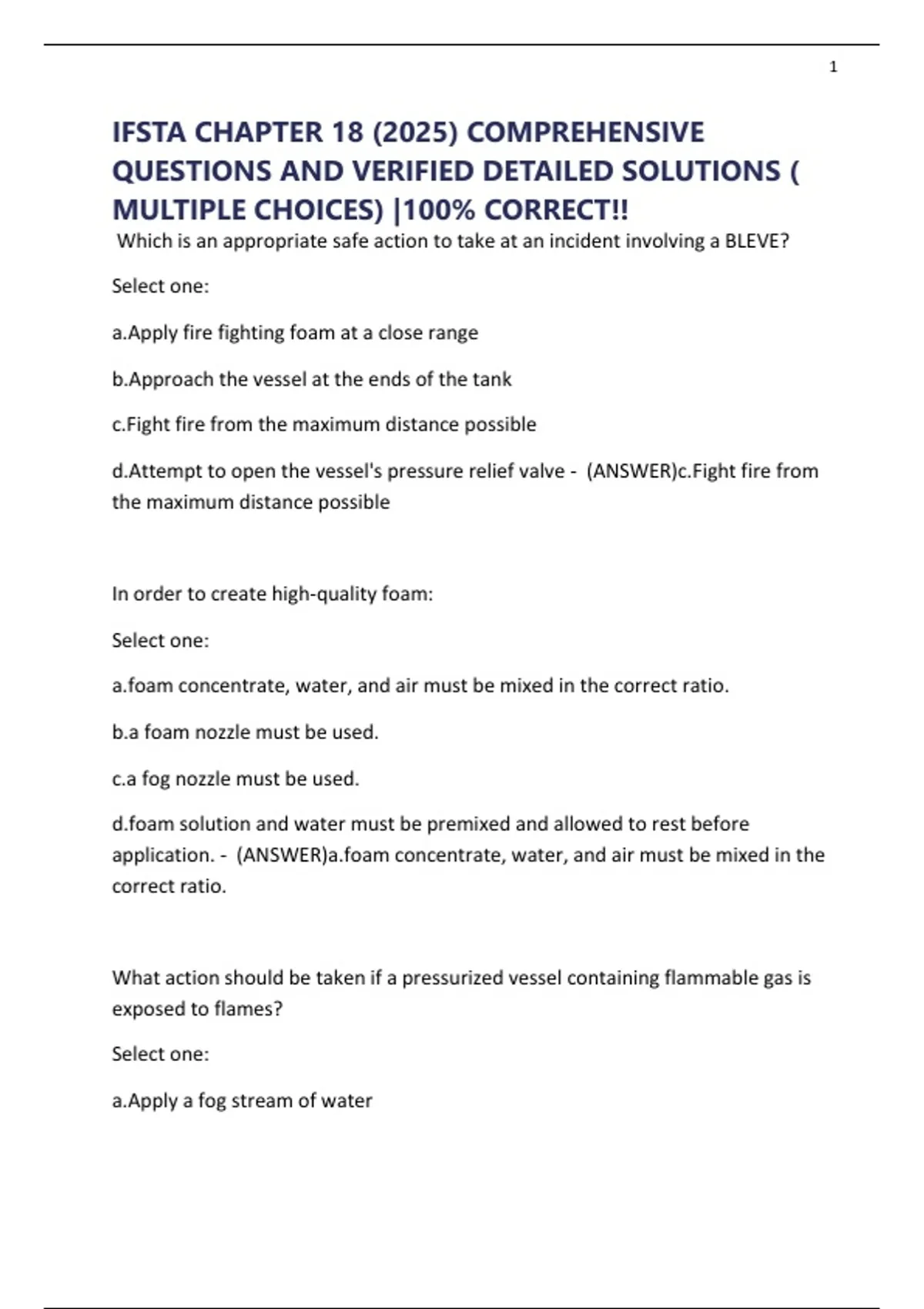 IFSTA CHAPTER 18 (2025) COMPREHENSIVE QUESTIONS AND VERIFIED DETAILED SOLUTIONS ( MULTIPLE CHOICES) |100% CORRECT!!
