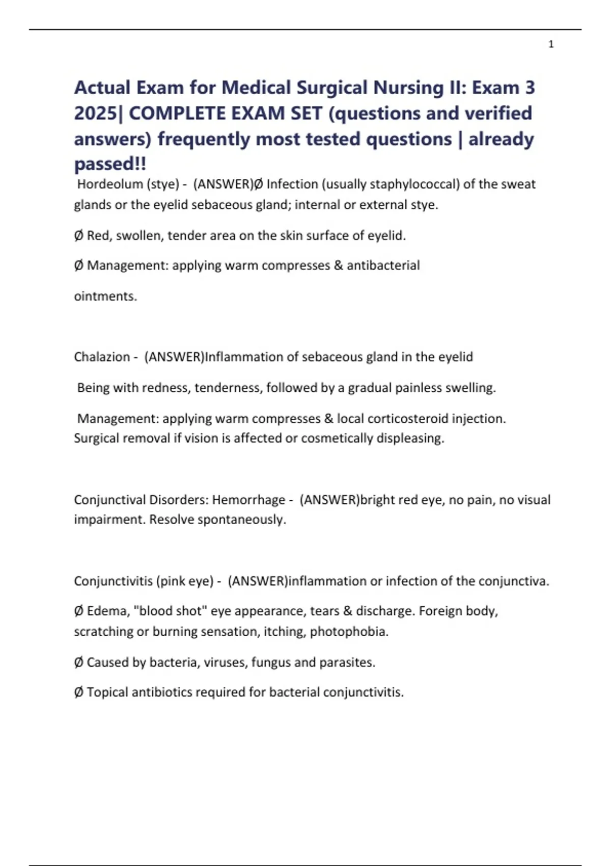 Nursing Care for Conjunctival Disorders - (ANSWER)Focus on infection control
