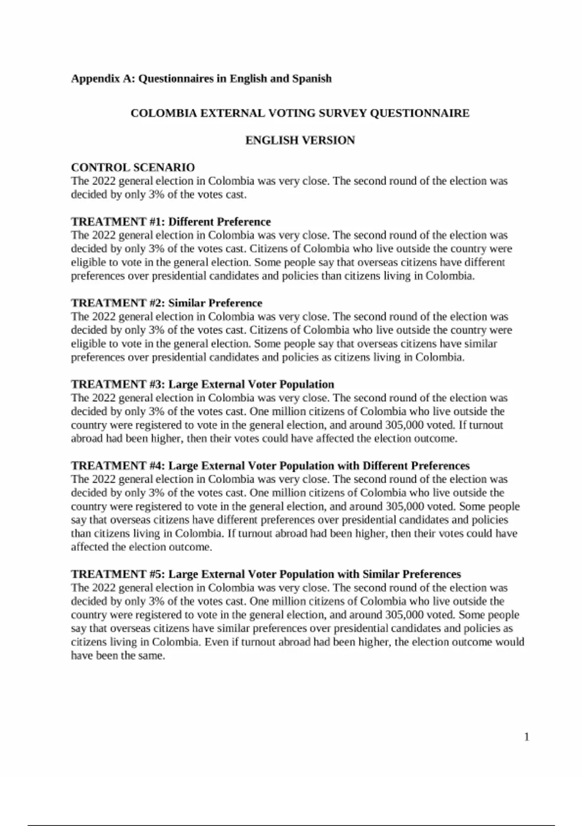 Ballots beyond borders attitudes (COLOMBIA EXTERNAL VOTING SURVEY QUESTIONNAIRE)