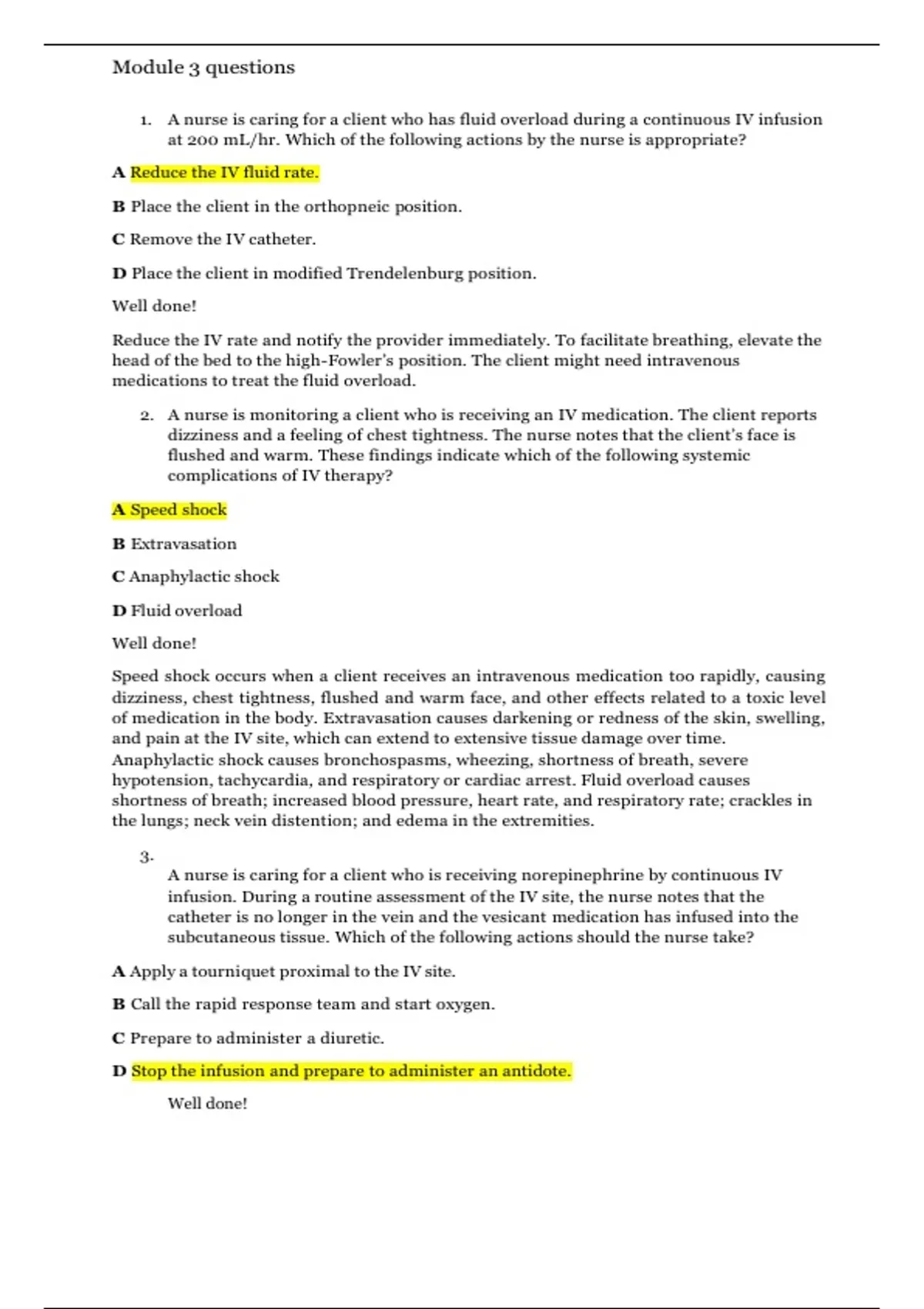 1. A nurse is caring for a client who has fluid overload during a continuous IV infusion