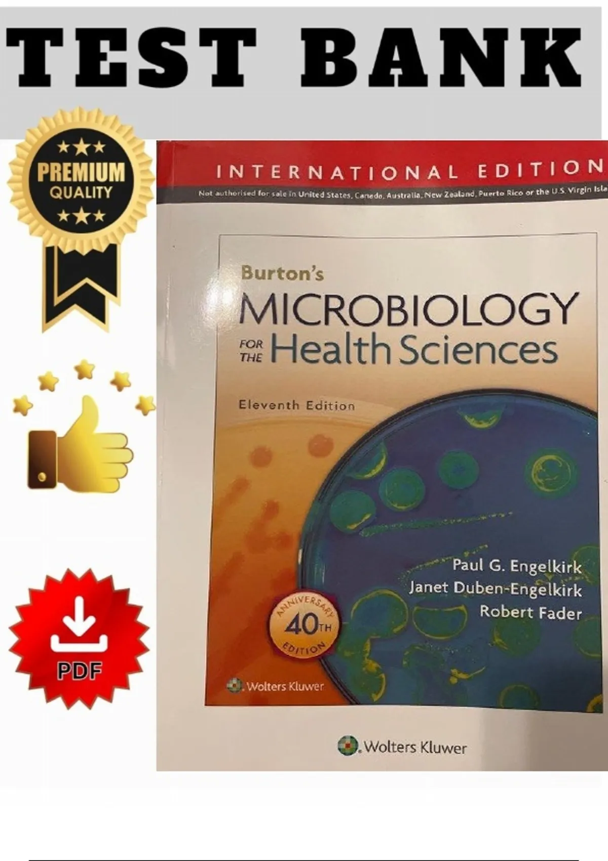 Burton’s Microbiology for the Health Sciences, 11th Edition (Engelkirk, Duben-Engelkirk, Fader) | Test Bank | All Chapters (1–21) | 2025 Version Description: Boost your exam preparation with the 2025 Test Bank for Burton’s Microbiology for the Health Sciences, 11th Edition by Engelkirk, Duben-Engelkirk, & Fader. Covers all 21 chapters comprehensively Includes MCQs, true/false, and applied clinical microbiology questions Verified and aligned with the latest 2025 edition Designed for nursing, allied health, and medical students Strengthens knowledge in pathogenesis, immunity, infectious diseases, and laboratory applications This reliable test bank is the perfect study companion to build confidence, master microbiology concepts, and achieve exam success.