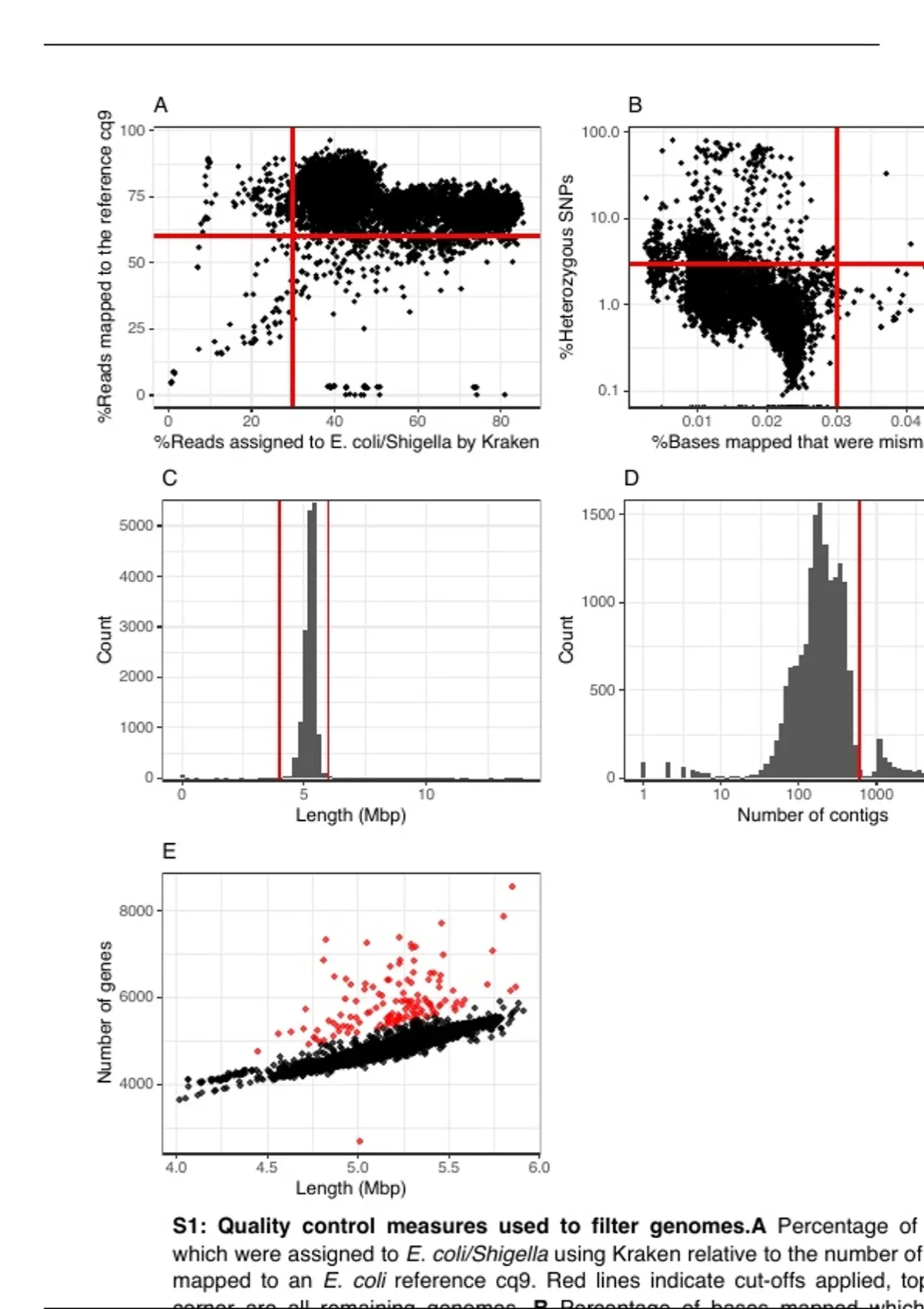 mapped to an E. coli reference cq9. Red lines indicate cut-offs applied, top