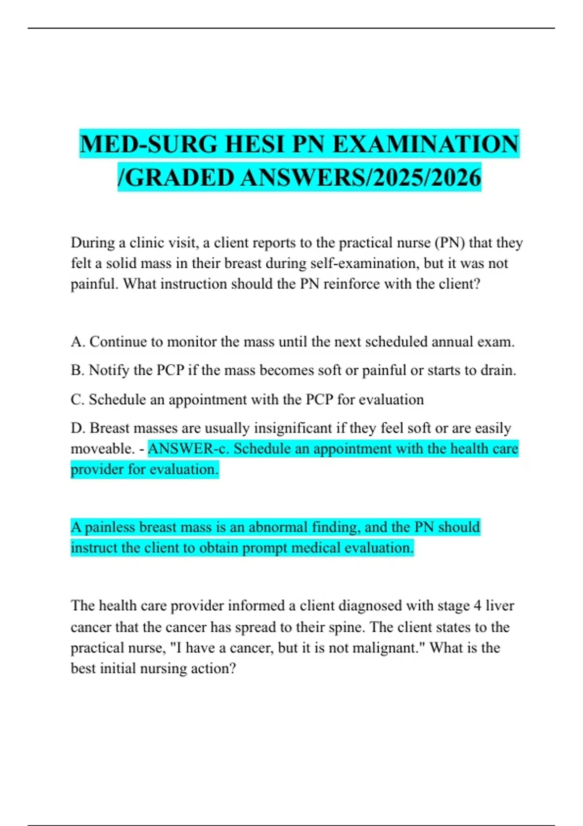 MED-SURG HESI PN EXAMINATION
