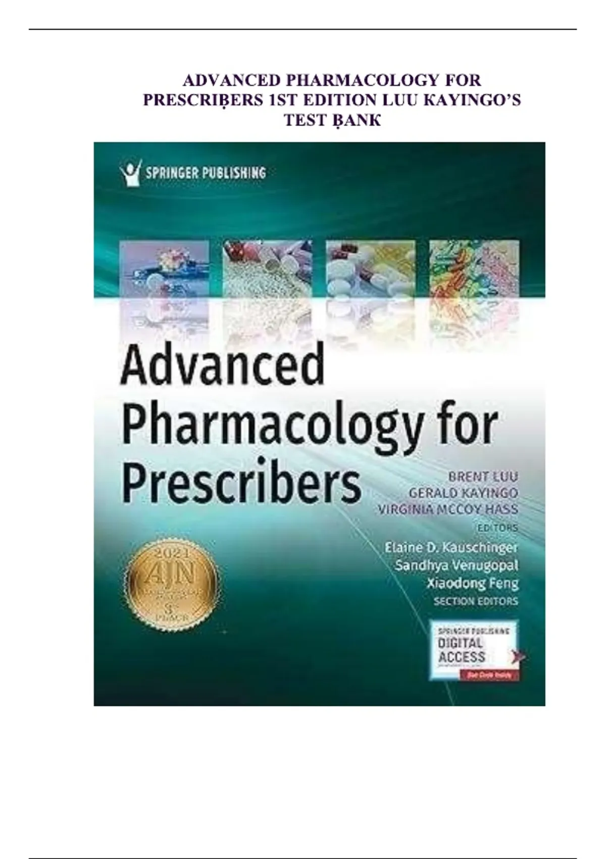 This verified test bank for Advanced Pharmacology for Prescribers, 1st Edition by Luu & Kayingos, contains a complete set of multiple-choice and exam-style questions with correct answers. It covers essential pharmacological principles, drug classifications, mechanisms of action, prescribing guidelines, and clinical applications. Ideal for nurse practitioner and advanced practice nursing students preparing for exams or board certification. advanced pharmacology, NUR652, prescribers, nurse practitioner, test bank, drug classifications, prescribing, clinical pharmacology, exam prep, nursing review