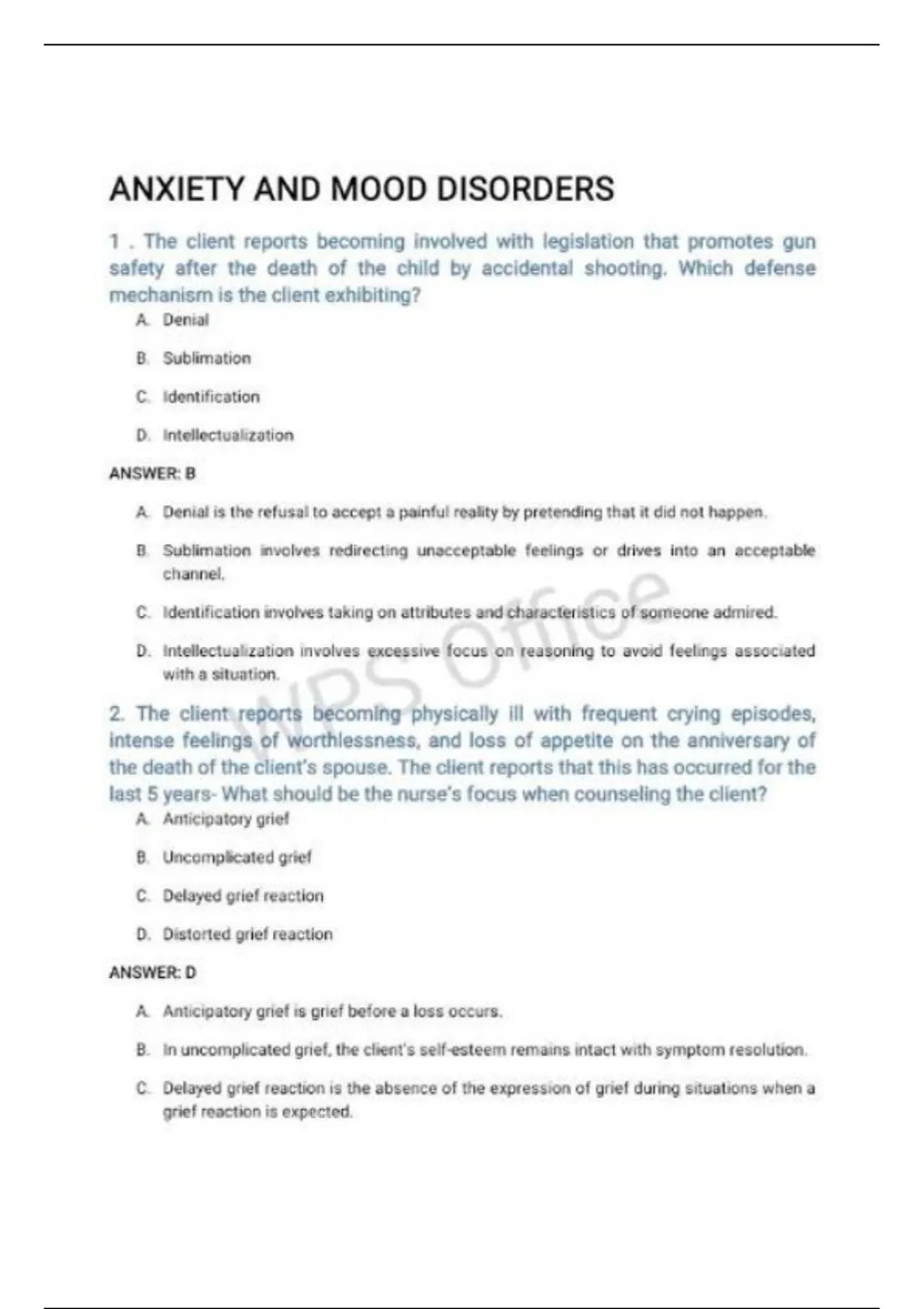 Mental health disorders NCLEX Test Bank Exam 2025 Questions And Correct Detailed Answers