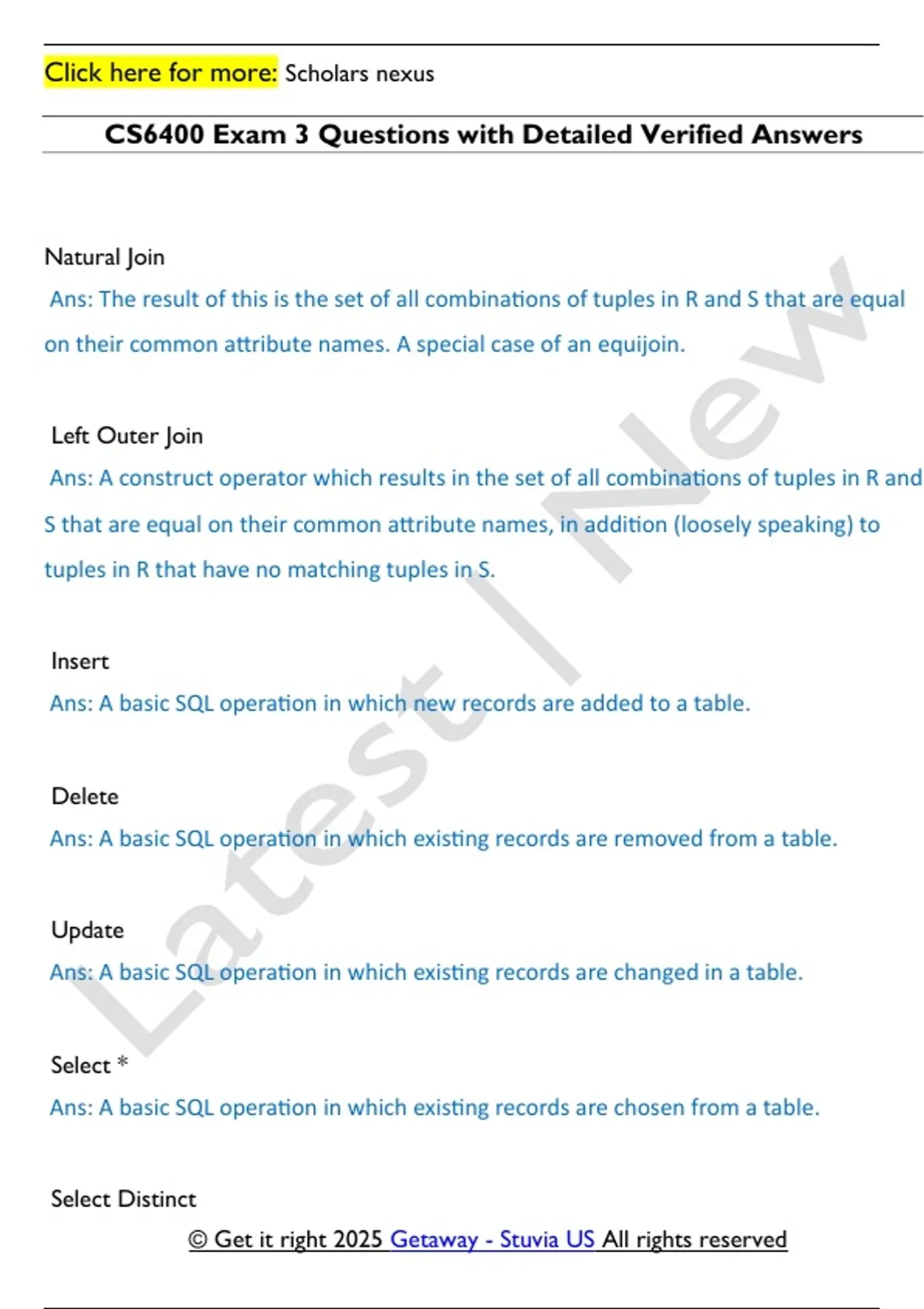 CS6400 Exam 3 Questions with Detailed Verified Answers