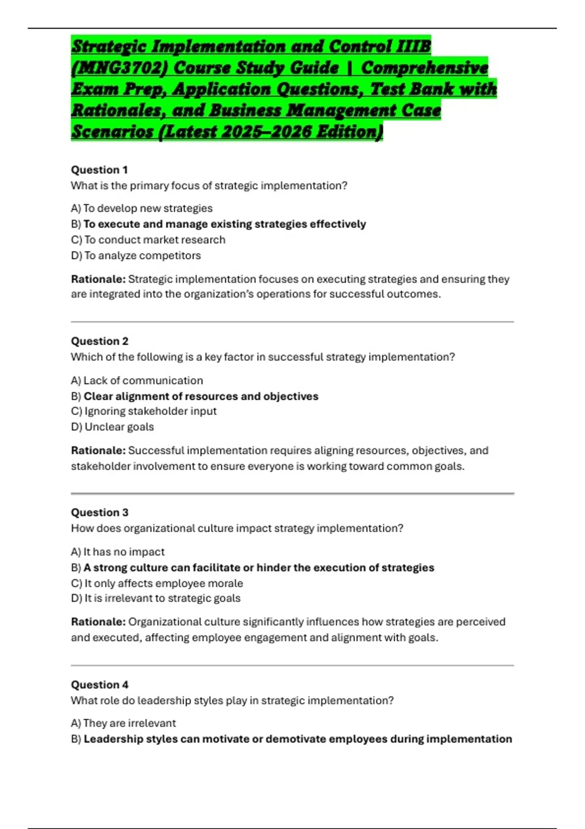 Exam Prep, Application Questions, Test Bank with