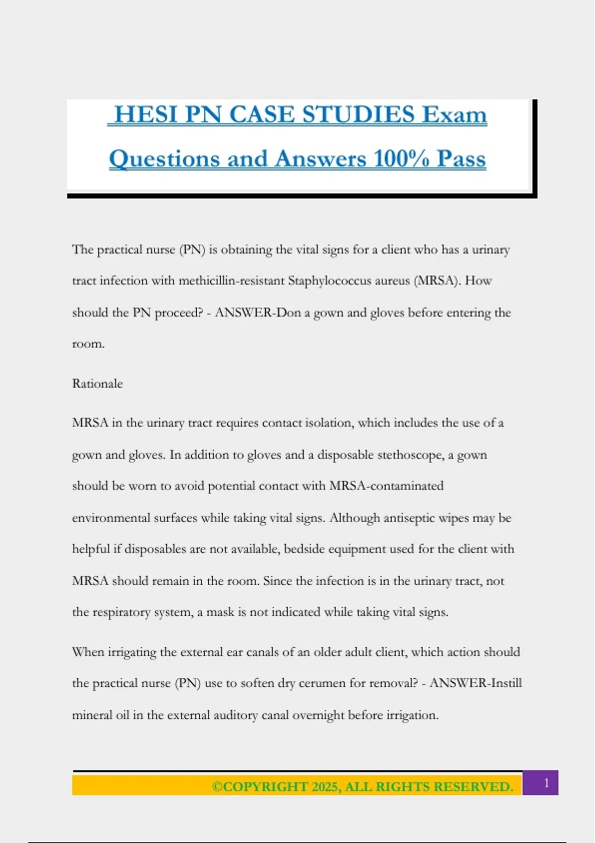 HESI PN CASE STUDIES Exam Questions and Answers 100% Pass