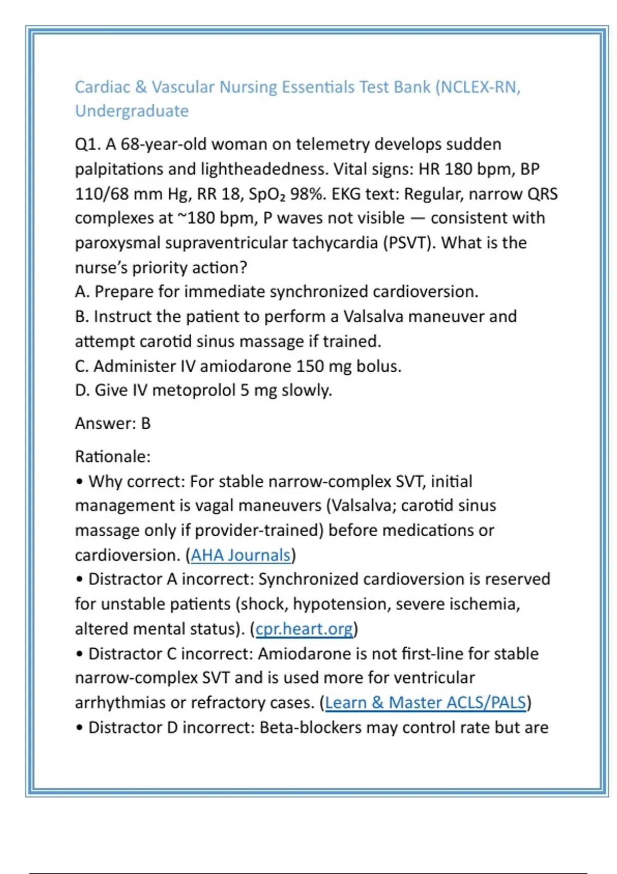 • Distractor C incorrect: Vagal maneuvers are for narrow-