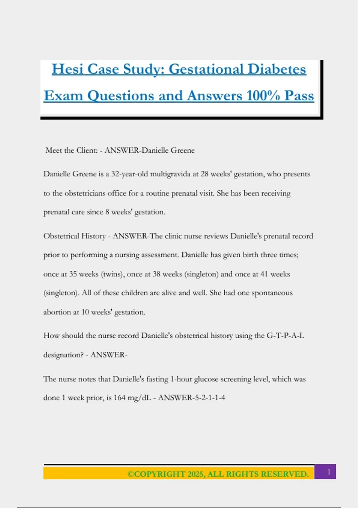 Hesi Case Study: Gestational Diabetes Exam Questions and Answers 100% Pass