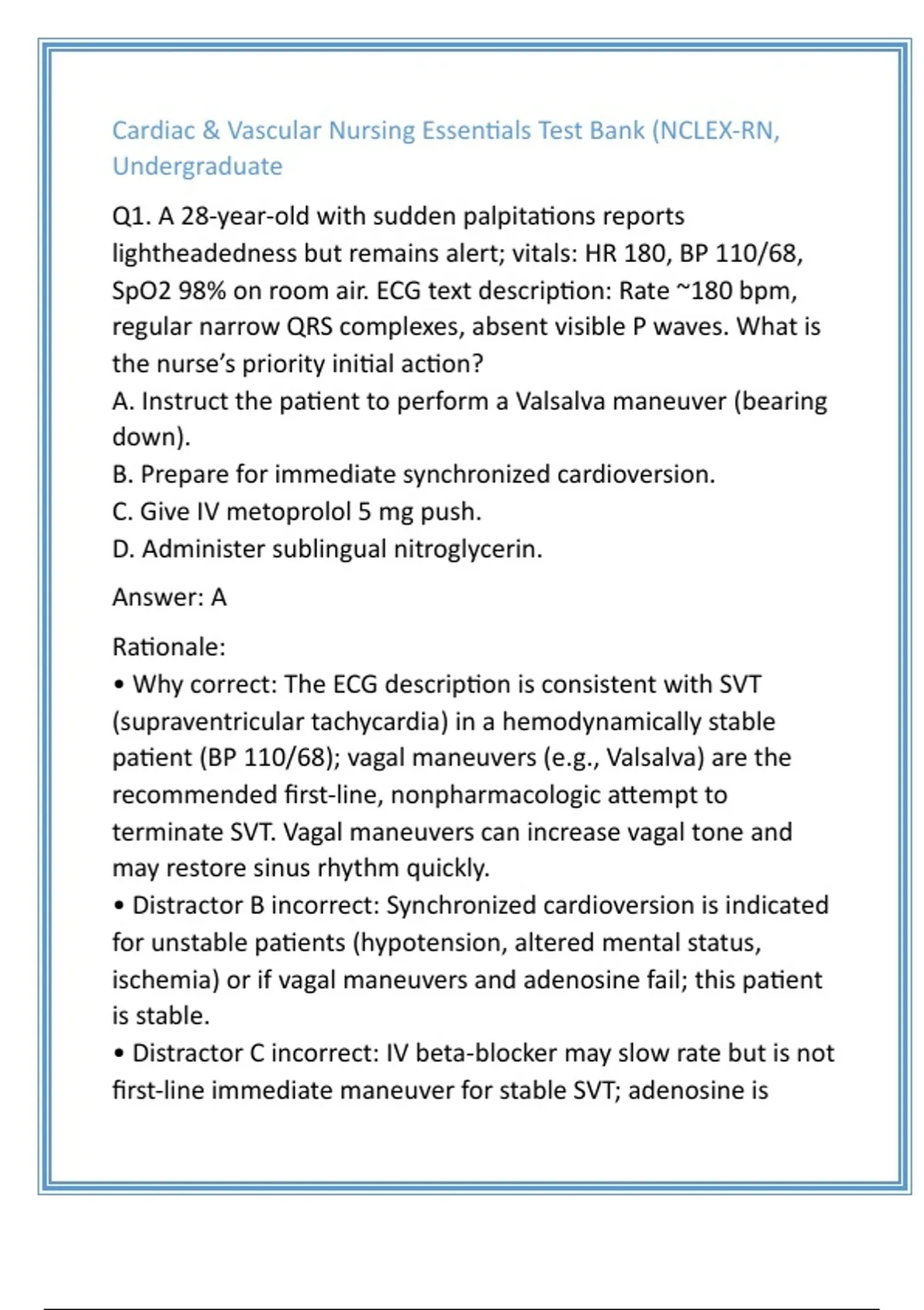 • Distractor C incorrect: Synchronized cardioversion is reserved