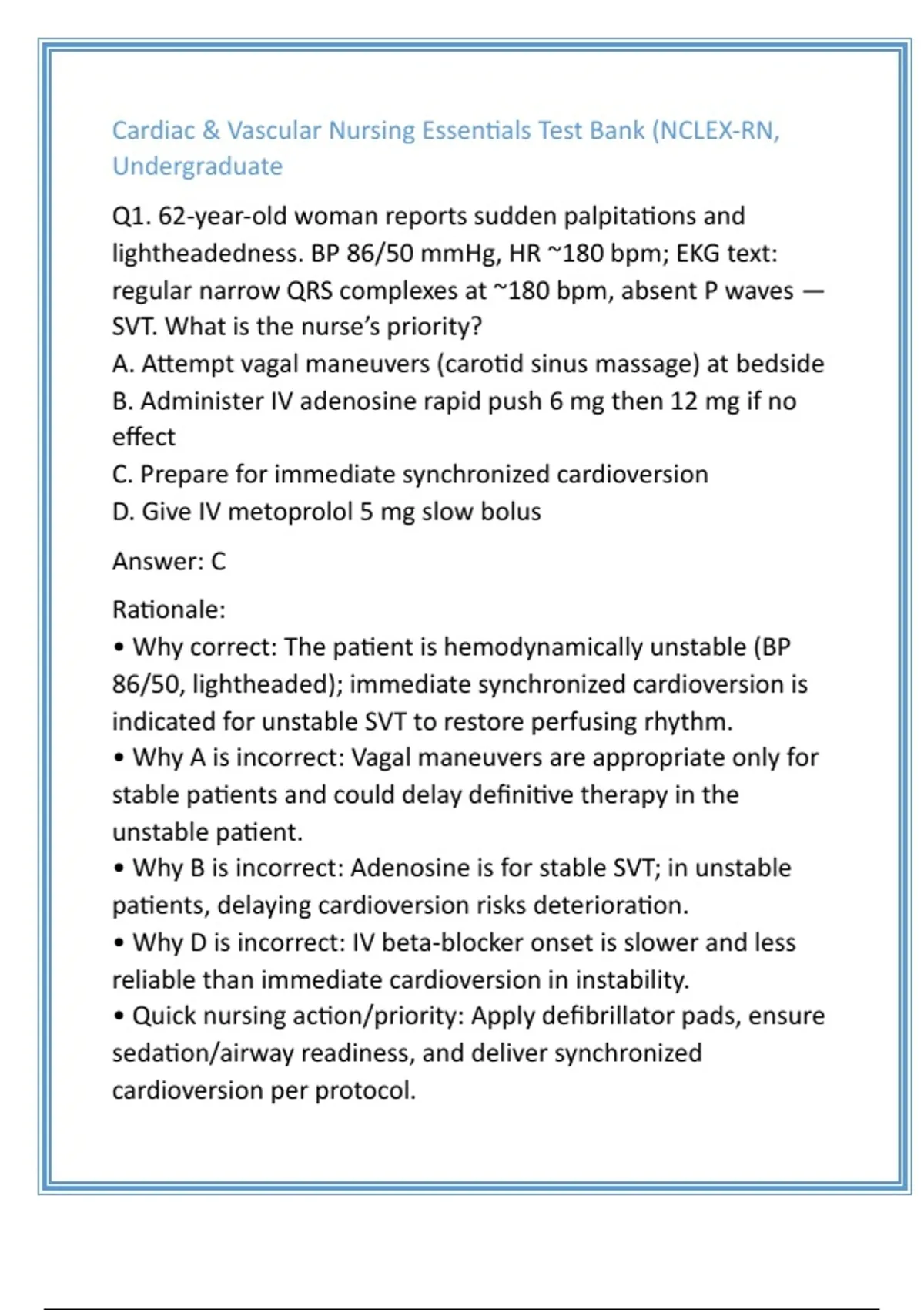 • Why B is incorrect: Adenosine is for stable SVT; in unstable