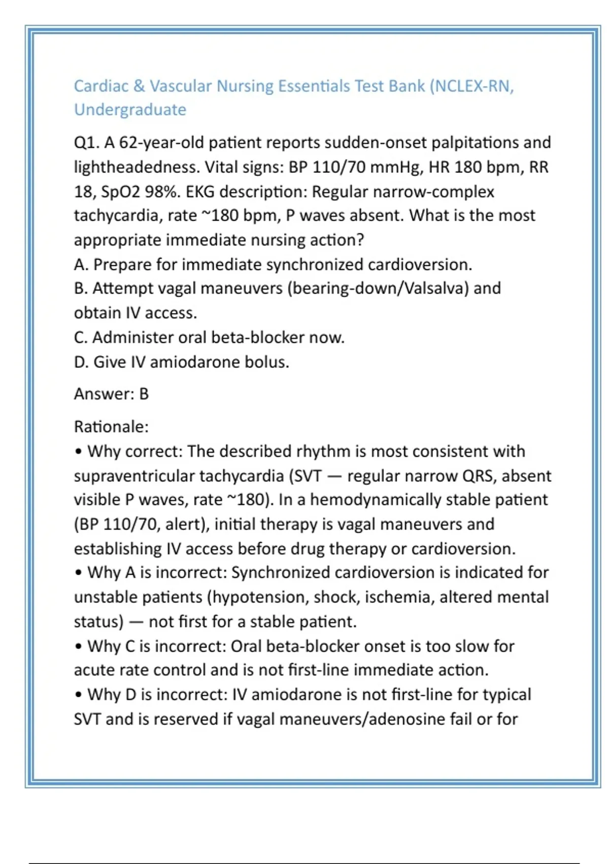 Q1. A 62-year-old patient reports sudden-onset palpitations and