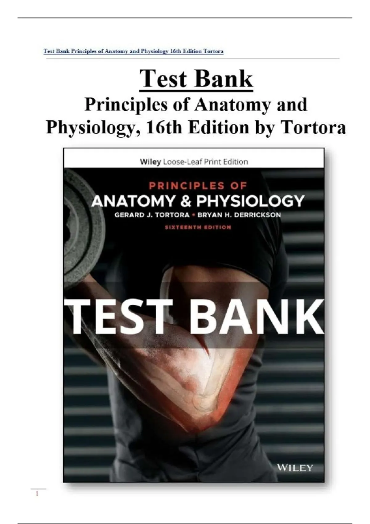 Test Bank for Principles of Anatomy and Physiology 16th Edition Tortora All Chapters (1-29) | A+ ULTIMATE GUIDE 2022