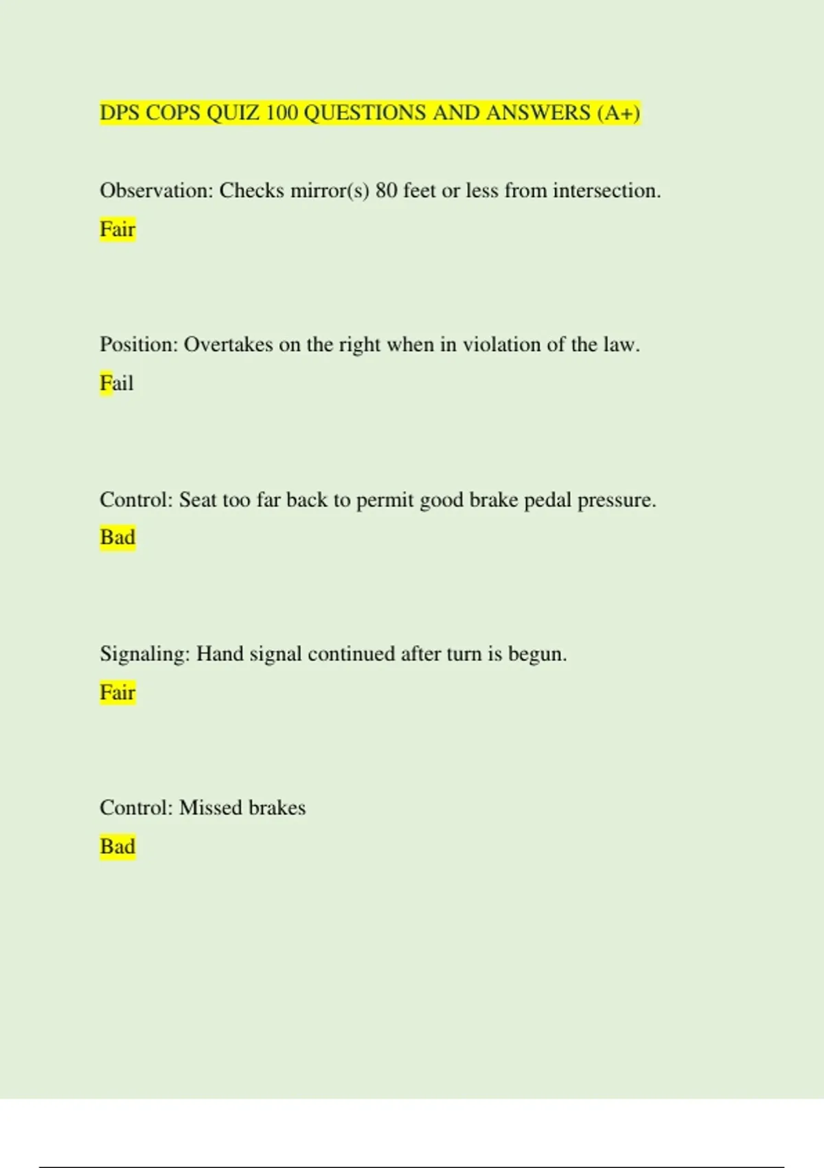 DPS COPS QUIZ 100 QUESTIONS AND ANSWERS (A+)
