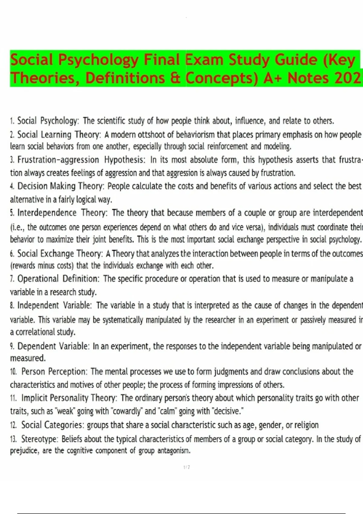 Social Psychology Final Exam Study Guide (Key Theories, Definitions & Concepts) A+ Notes 2025.pdf