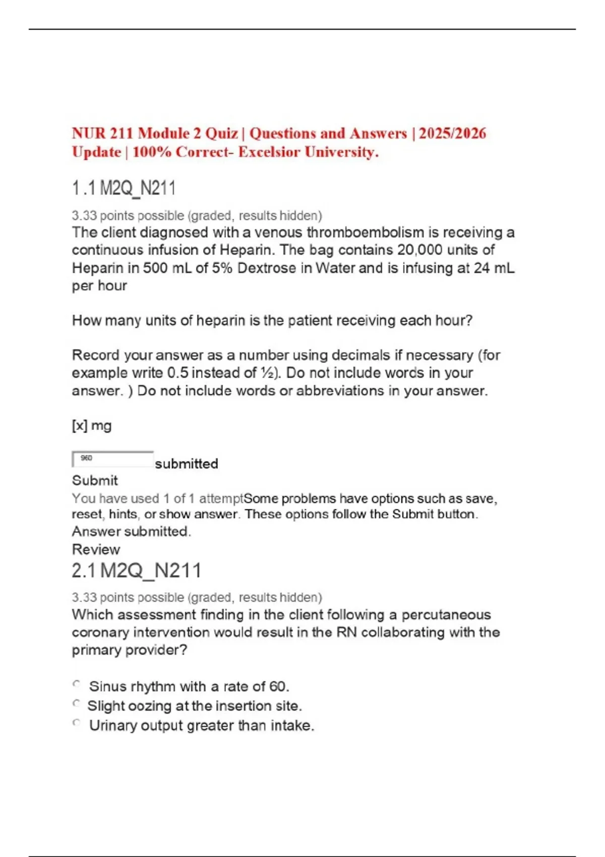 NUR 211 Module 2 Quiz | Questions and Answers | 2025/2026 Update | 100% Correct- Excelsior University.