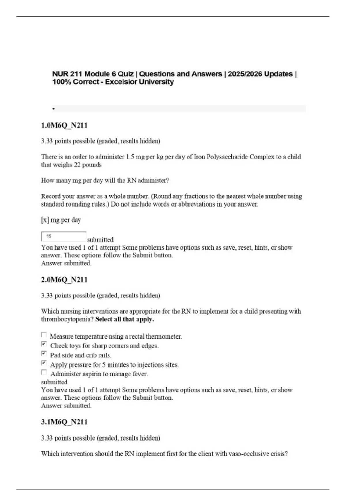 NUR 211 Module 6 Quiz | Questions and Answers | 2025/2026 Updates | 100% Correct - Excelsior University