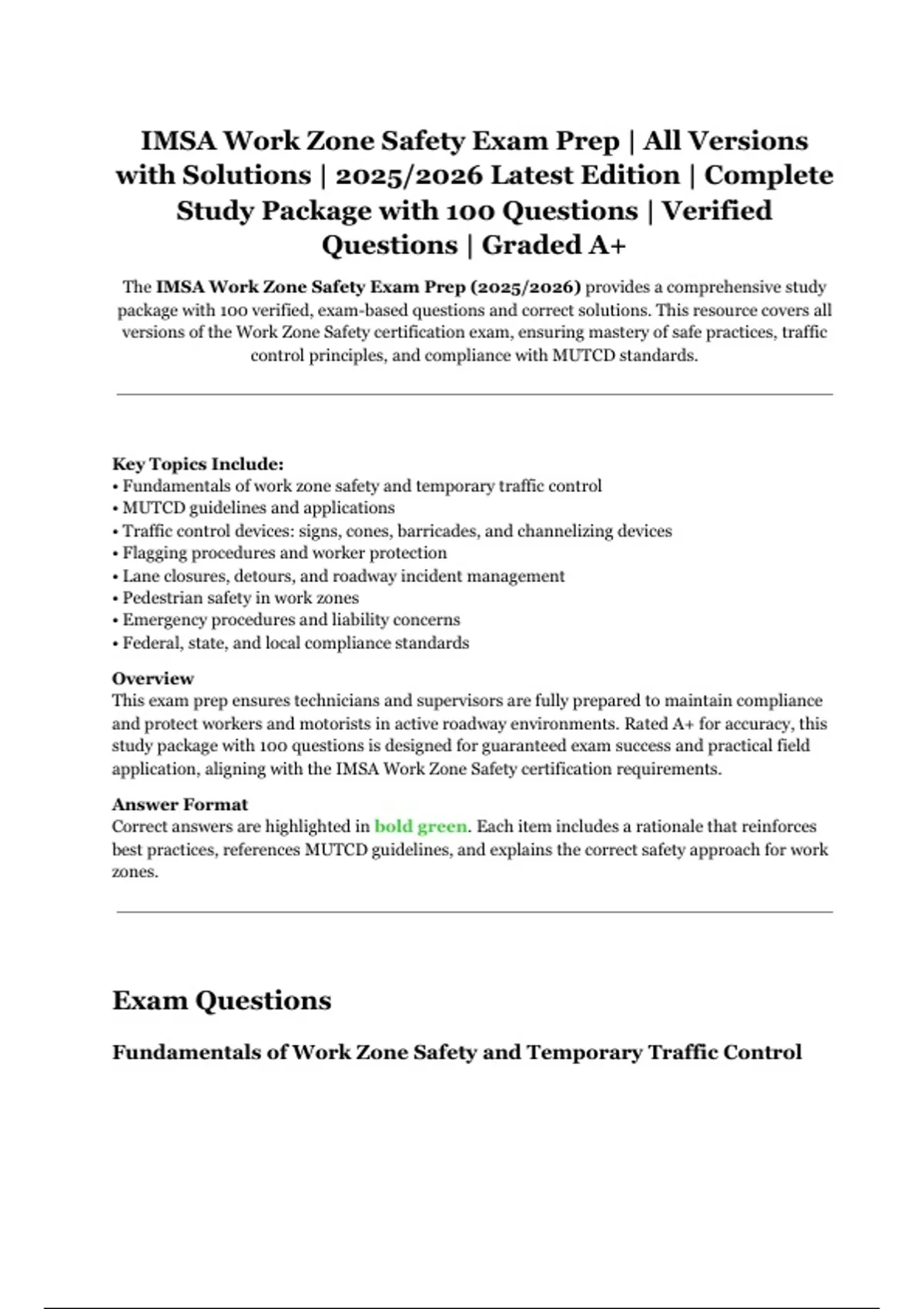 The IMSA Work Zone Safety Exam Prep (2025/2026) provides a comprehensive study