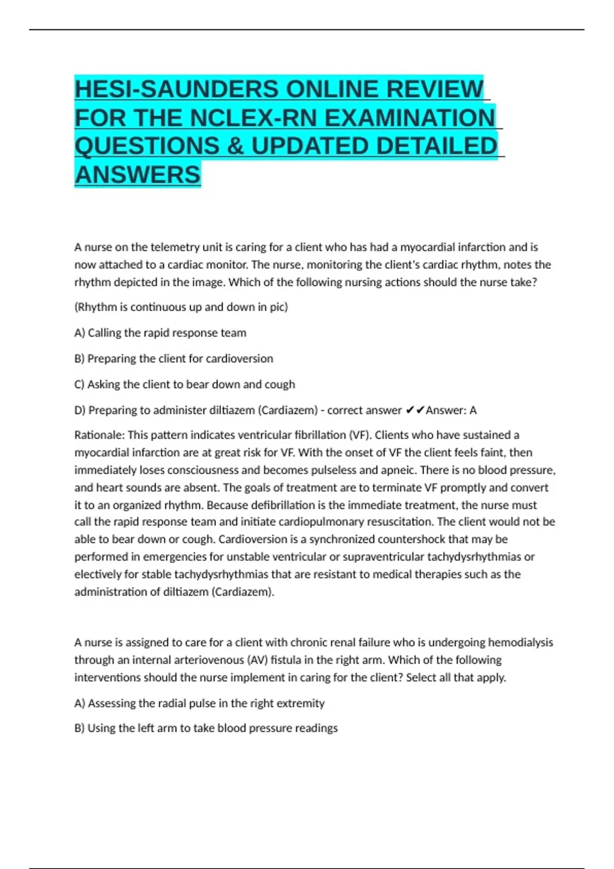 D) Preparing to administer diltiazem (Cardiazem) - correct answer ✔✔Answer: A