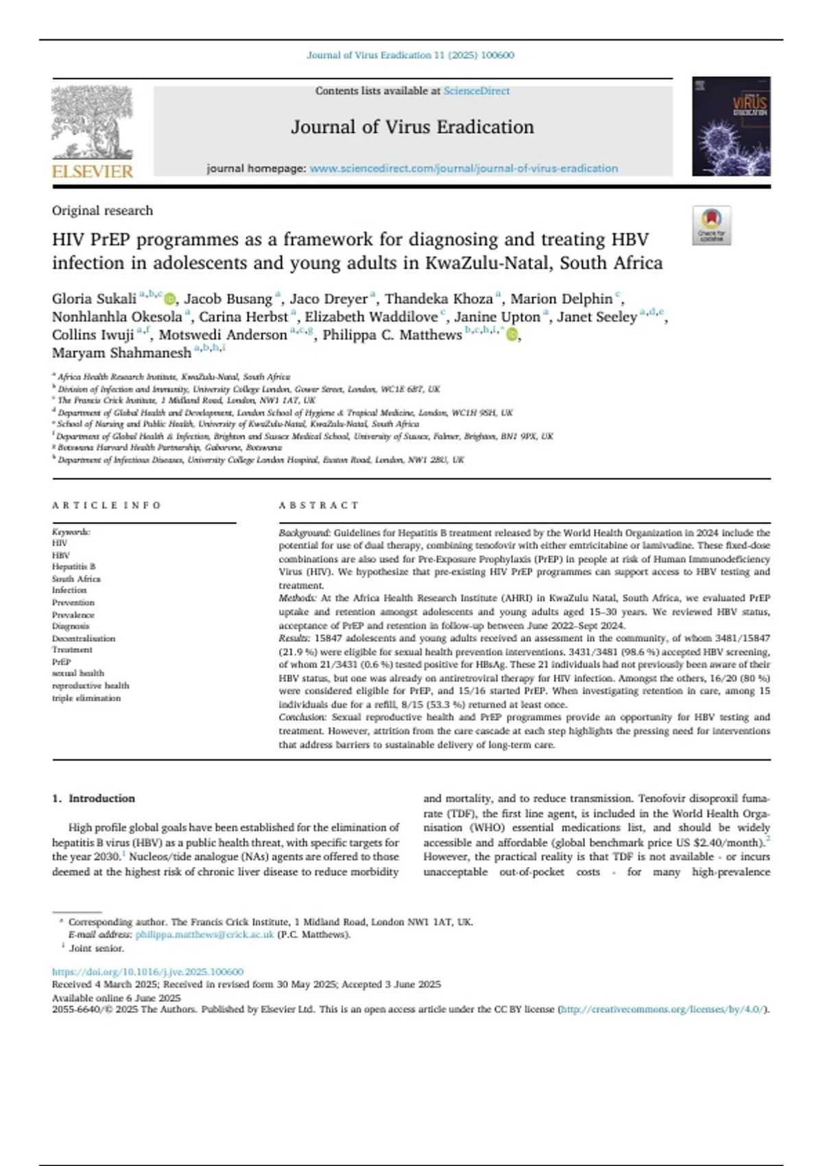 , G. Sukali et al. Journal of Virus Eradication 11 (2025) 100600