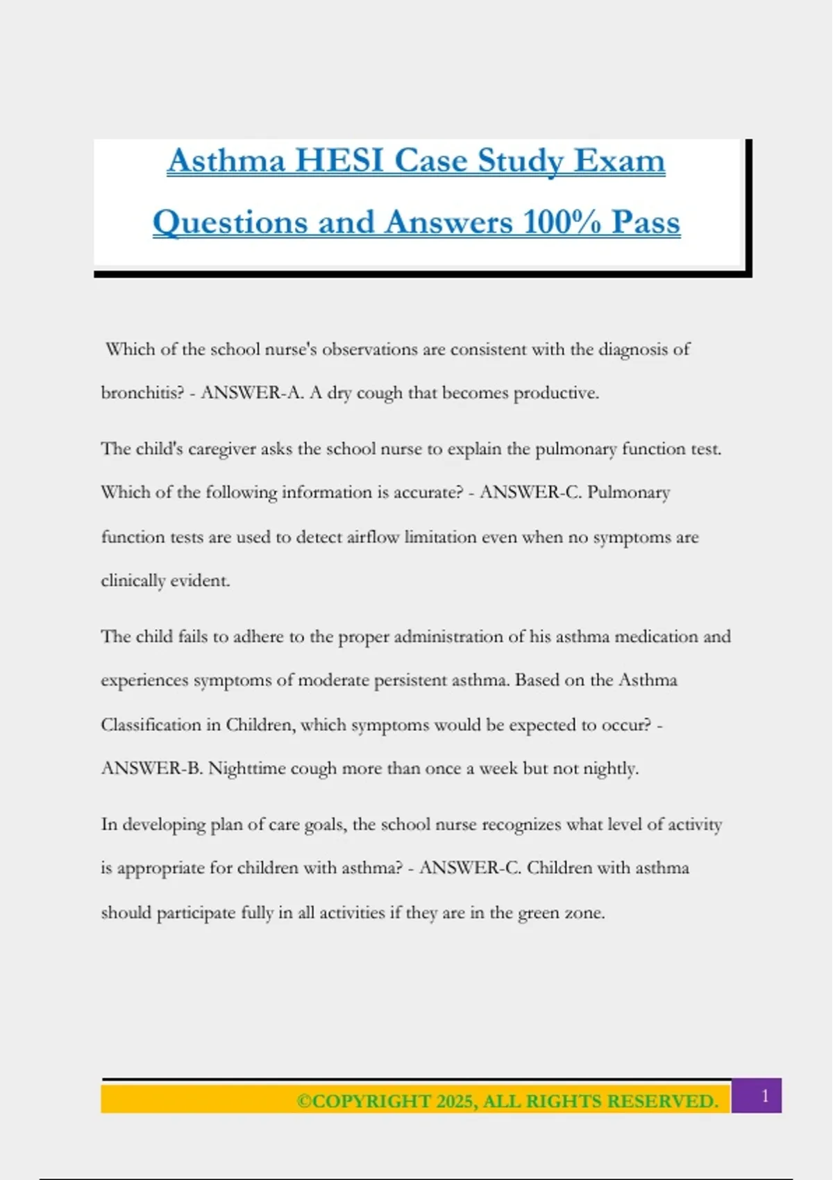 Asthma HESI Case Study Exam Questions and Answers 100% Pass